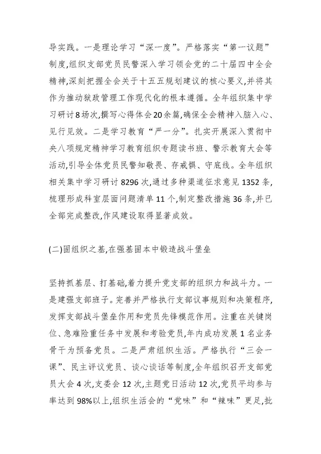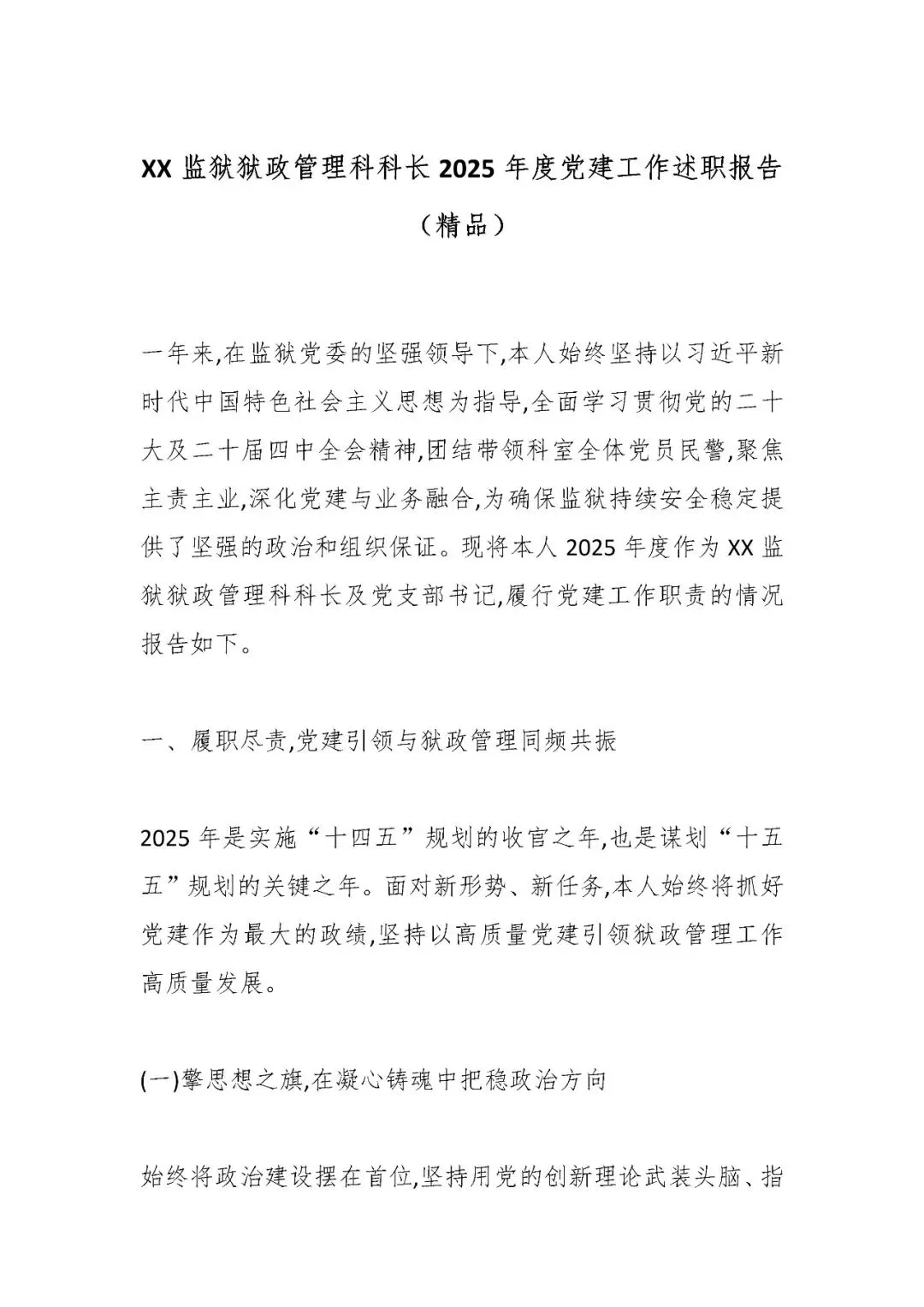 XX监狱狱政管理科科长2025年度党建工作述职报告