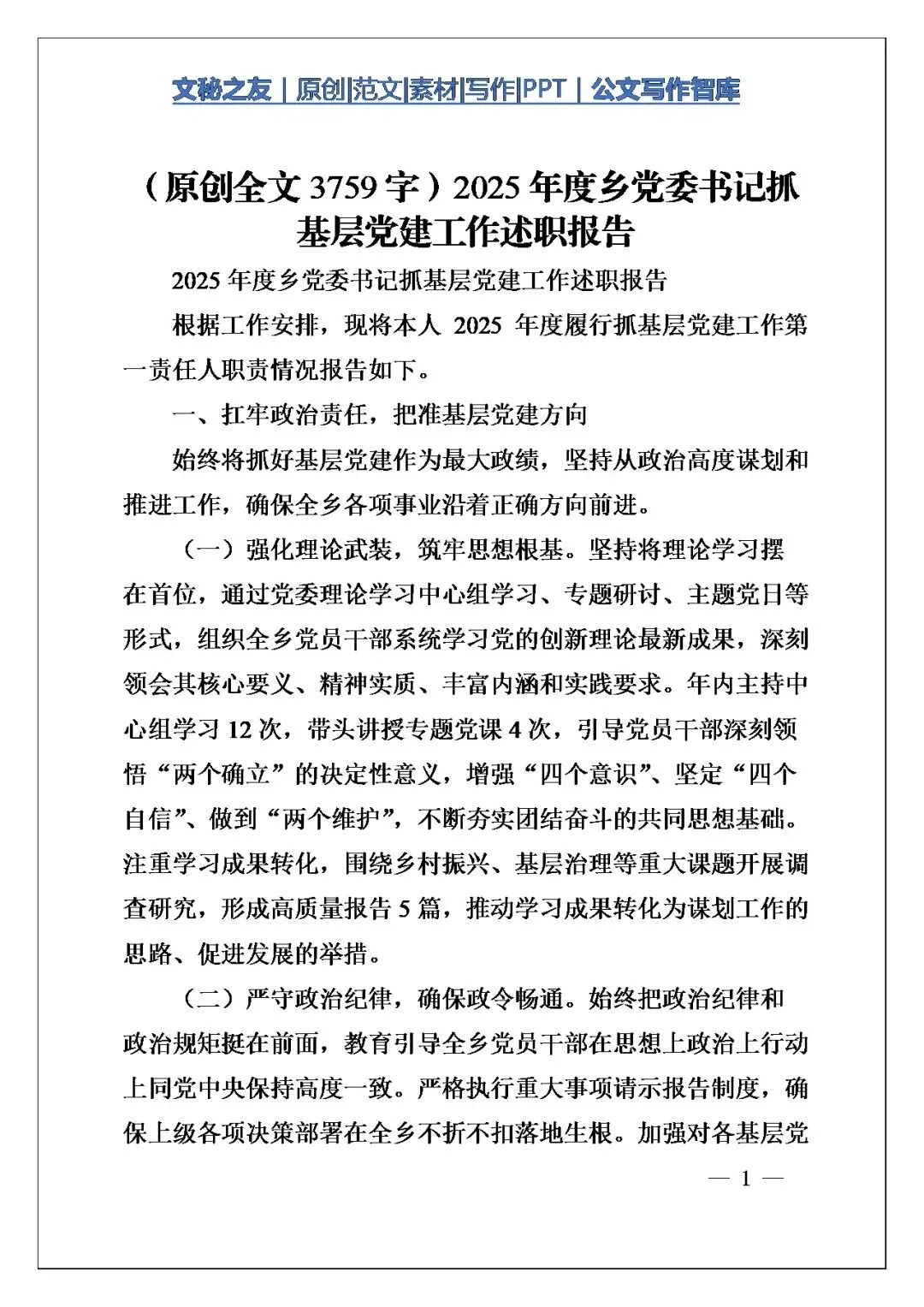 今天聊《2025年度乡党委书记抓基层党建工作述职报告》的写作角度,它没脱离“第一责任人”的身份——“扛政治责任”到“压实党建职责”,紧扣乡党委书记的主责,像文章中这样的比喻签责任书、专项督查,是基层党建里“书记抓、抓书记”的实在动作,不悬空。