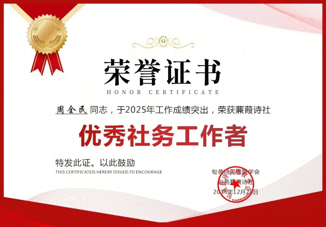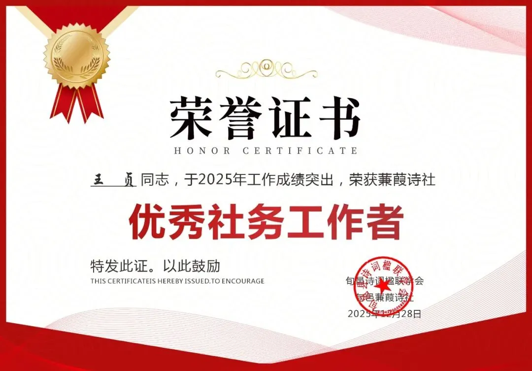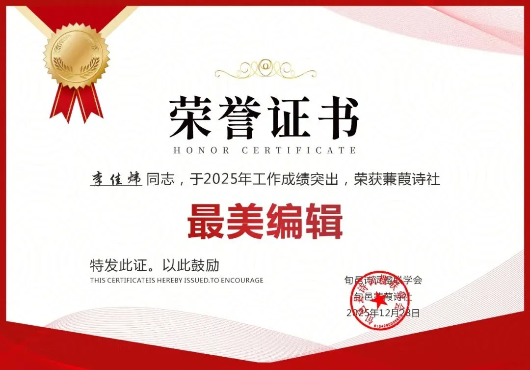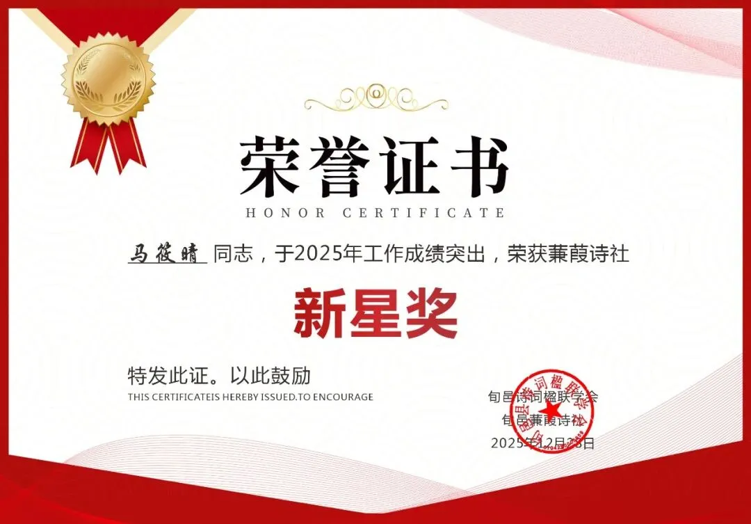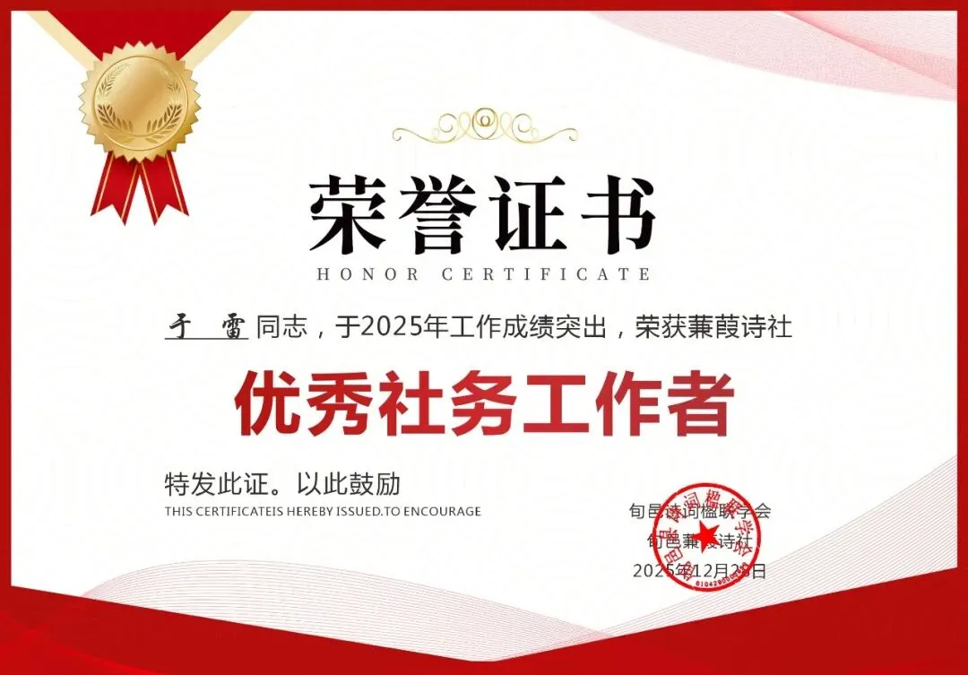 2025年12月31日晚8时,旬邑蒹葭诗社年终工作总结暨表彰大会于诗社微信群线上开启,全体社员与文友齐聚云端,共议诗社发展之策,共贺年度先进个人,为2025年的诗路征程画上圆满句点。