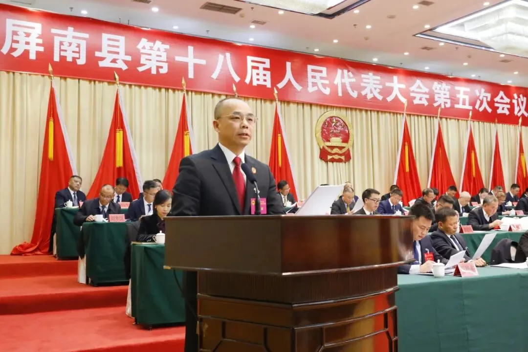 在屏南县第十八届人民代表大会第五次会议上作《屏南县人民法院工作报告》,并接受大会审议。
