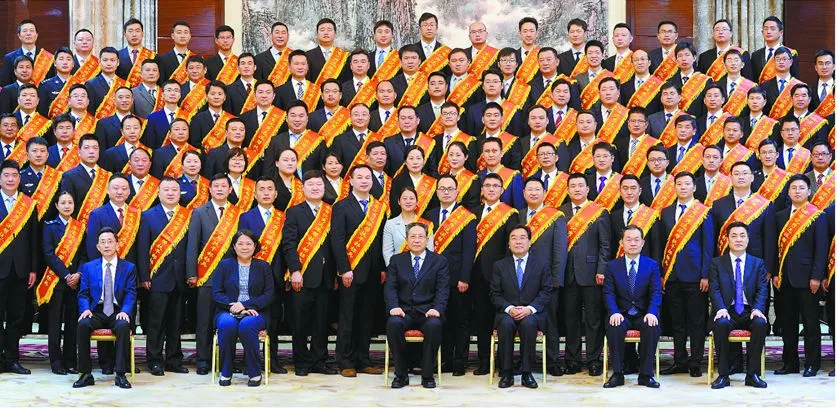 ∆ 4月2日,省委书记李锦斌在合肥亲切会见了全省第六批优秀选派帮扶干部标兵,并同大家合影留念。徐国康/摄