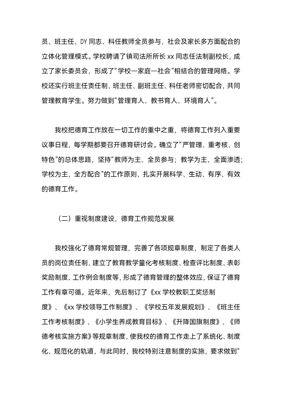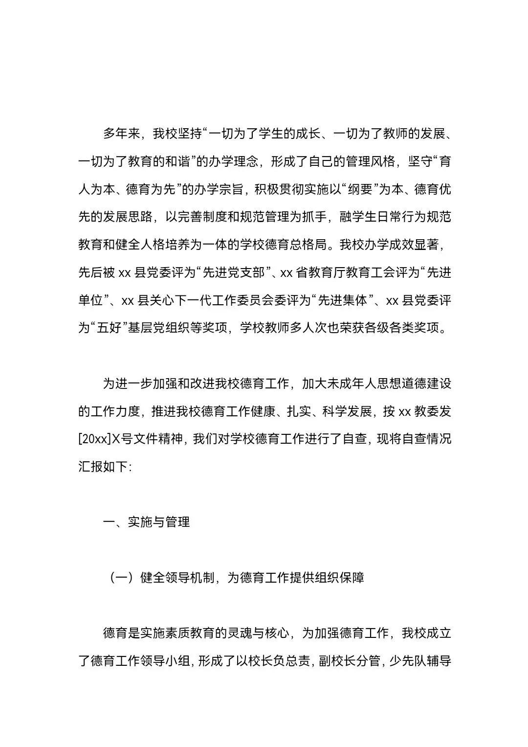 学校德育工作督导评估自查报告