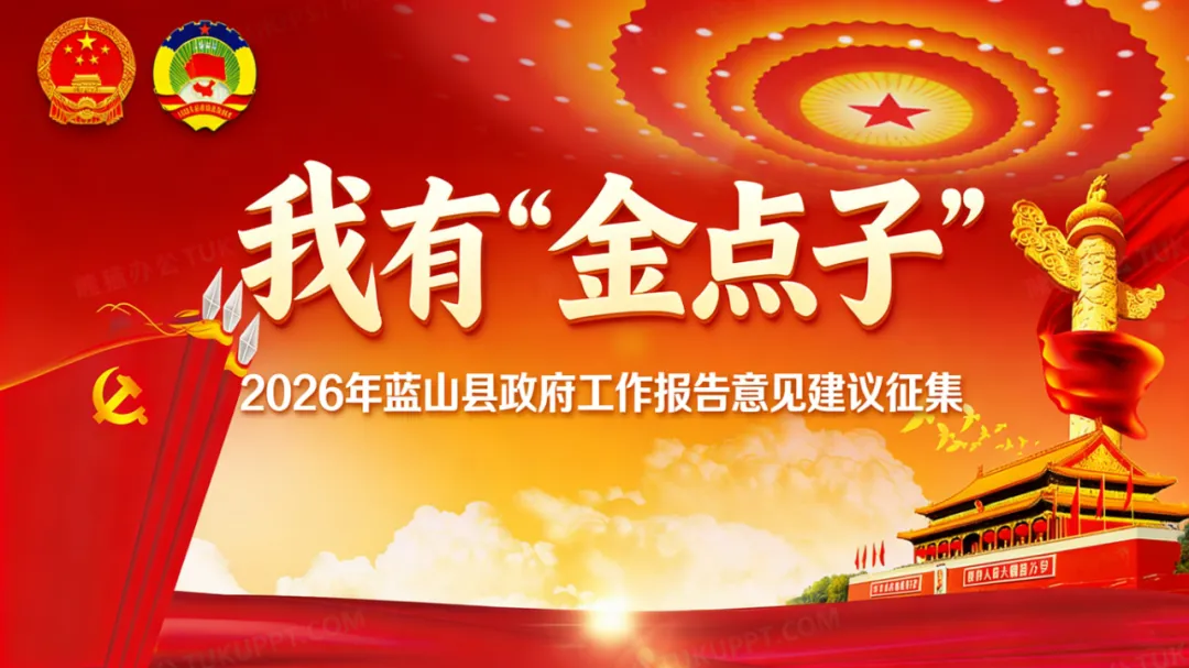民之所望,施政所向。2026年是“十五五”开局之年,全力确保“十五五”开好局、起好步,精准有效解决群众急难愁盼问题,是2026年政府工作的重点。为广泛倾听民声、汇集民智,即日起至2026年全县两会期间,蓝山县融媒体中心利用各个平台,启动“我有‘金点子’——2026年蓝山县政府工作报告意见建议征集”活动,诚邀广大网民踊跃建言献策,共同为谋划新一年县政府工作贡献智慧与力量。
