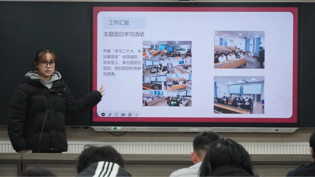 首先,由各团支书依次登台述职。他们围绕主题团日、实践与志愿服务、学风建设以及团建创新等重点工作展开阐述,生动展现了团支部在凝聚青年力量、引领价值导向方面的重要作用。各团支书全面呈现了支部的工作实绩:从团日活动的创新开展,通过榜样宣讲、创意游戏、实地开展等多元形式,让同学们在沉浸式学习中厚植家国情怀、坚定责任担当;到团建基础的扎实夯实,涵盖团员发展与教育管理、支部班子的规范运转、团课参与等细致工作,为支部的有序发展提供坚实支撑;再到形式多样的实践活动与志愿服务,同学们走进社区,在躬身实践中增长本领、锤炼品格;还有扎实有效的学风建设行动,通过学习互助小组、经验分享会等举措,营造比学赶超的优良氛围,助力同学们学业进步。同学们纷纷表示,这些丰富且务实的活动,不仅为大家搭建了成长锻炼的广阔平台,更让团支部的向心力和凝聚力显著增强,成为同学们信赖的温暖集体。
