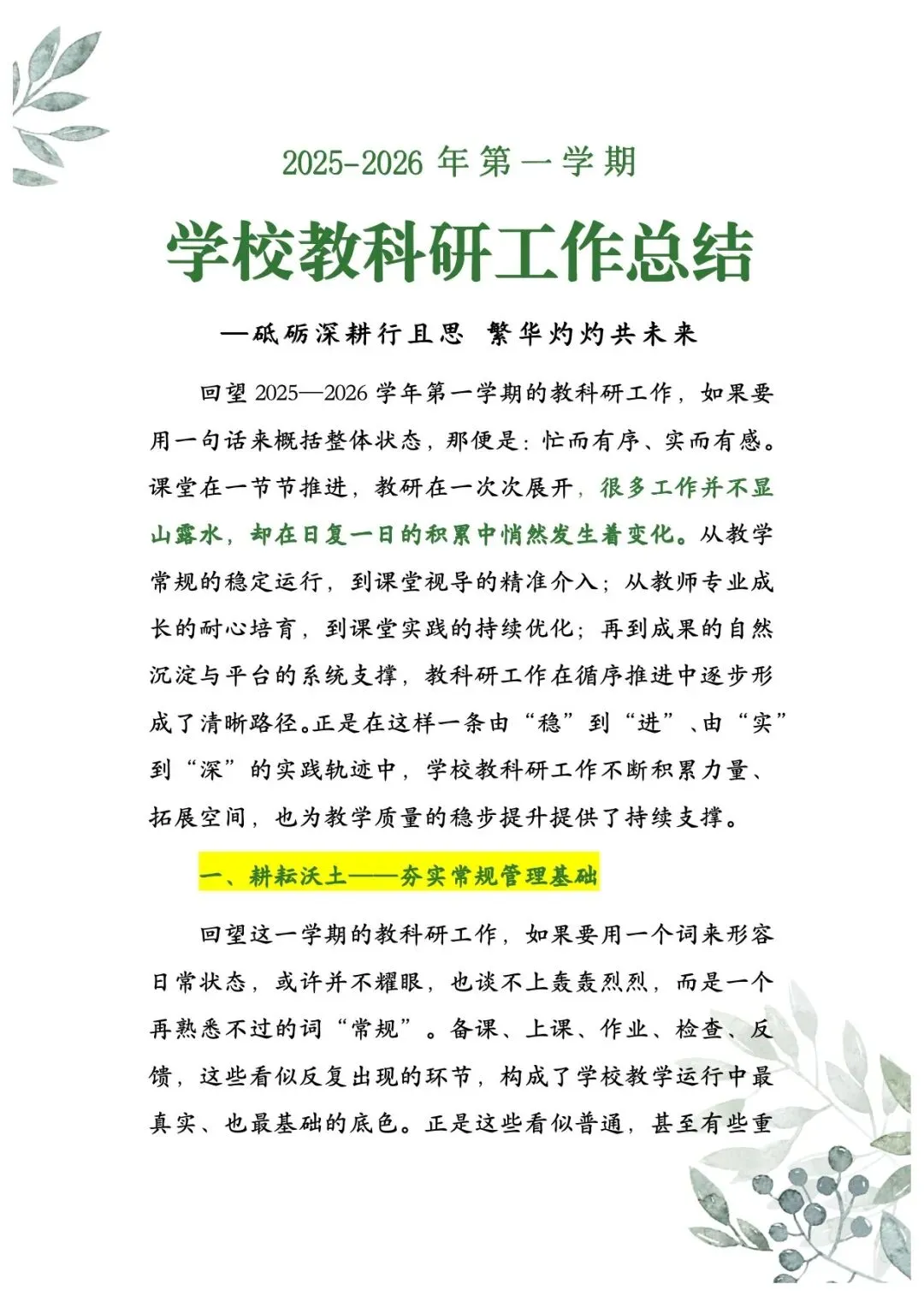 >教研主任期末总结真的不用愁!这份超实用的教科研工作总结框架,从常规管理到成果沉淀全覆盖,直接套用太香了!