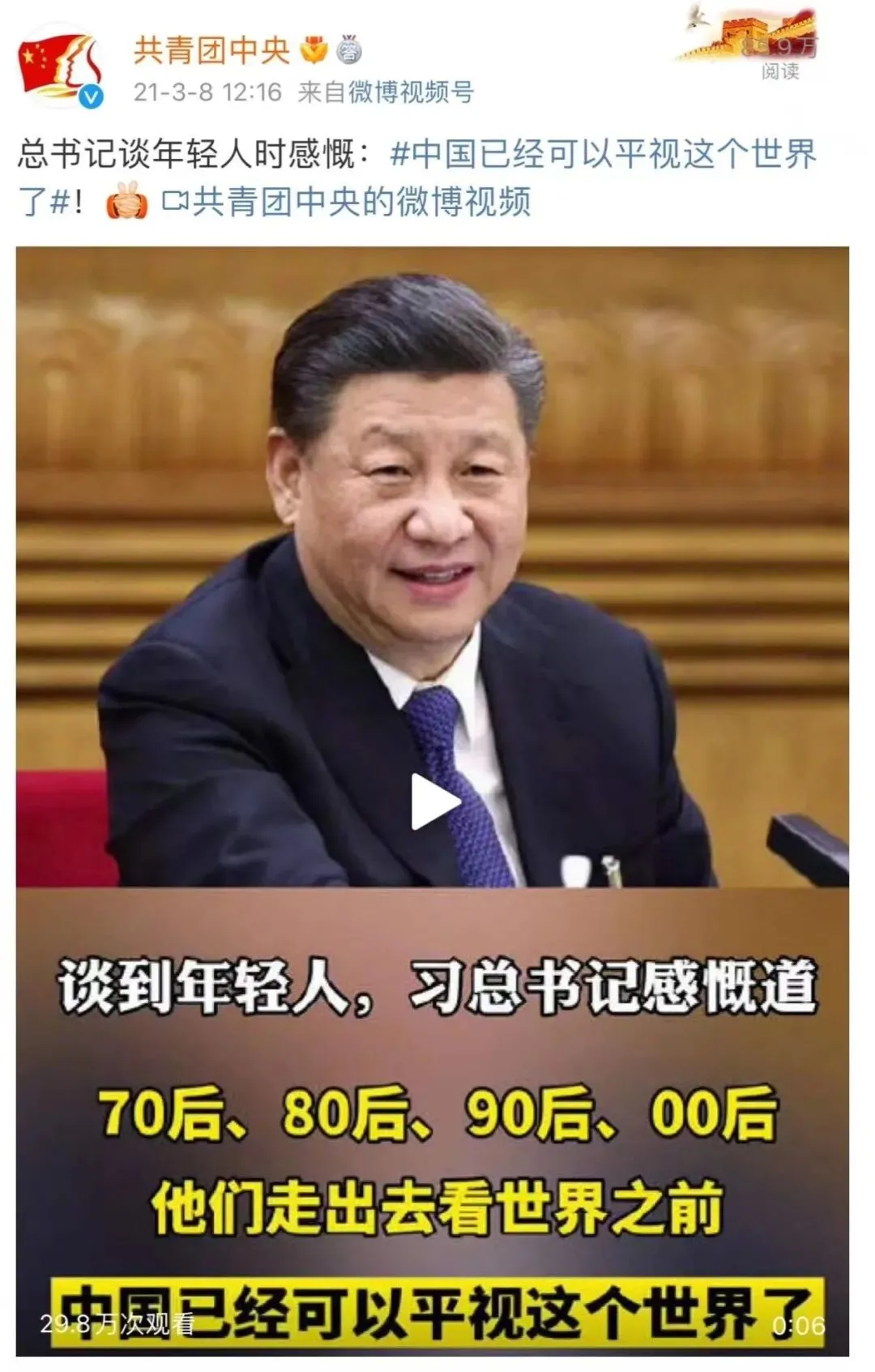 中国已经可以平视这个世界了”