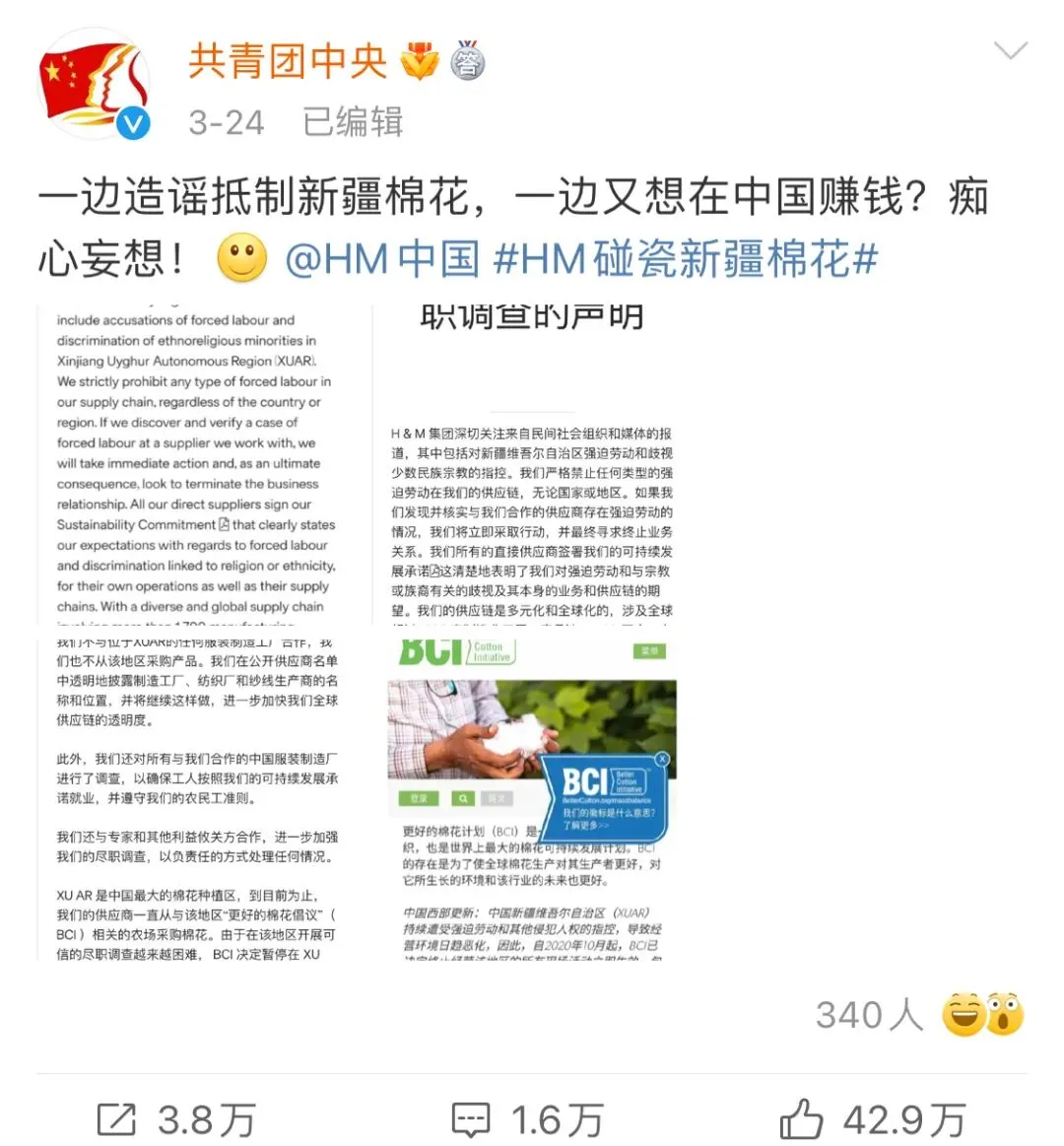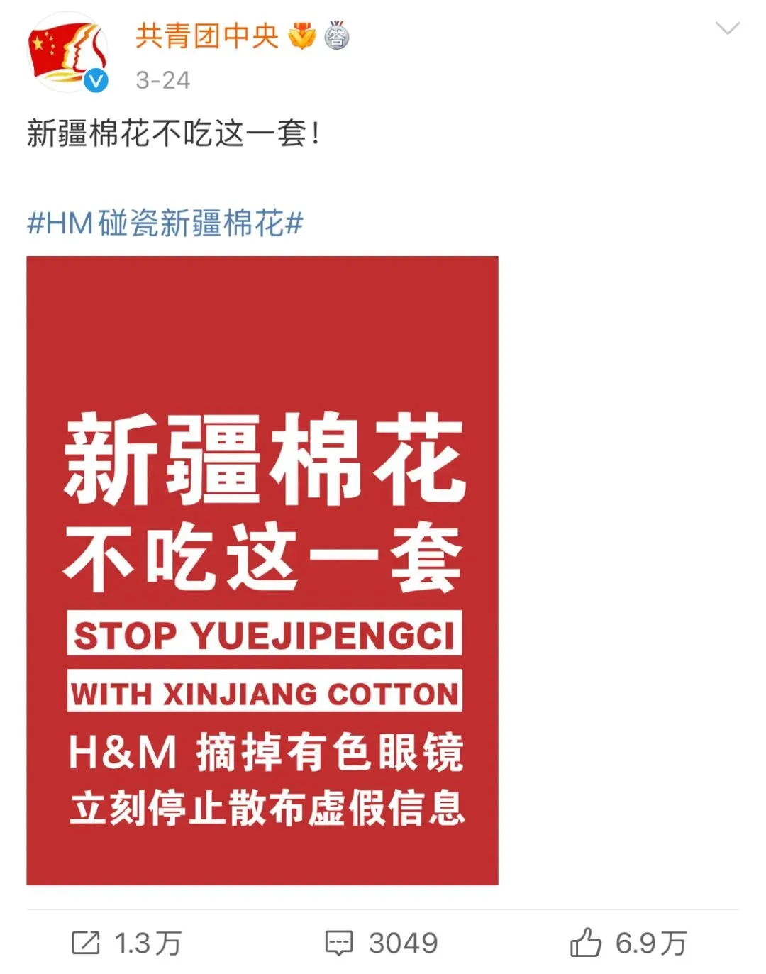 在微博上发布了歪曲事实