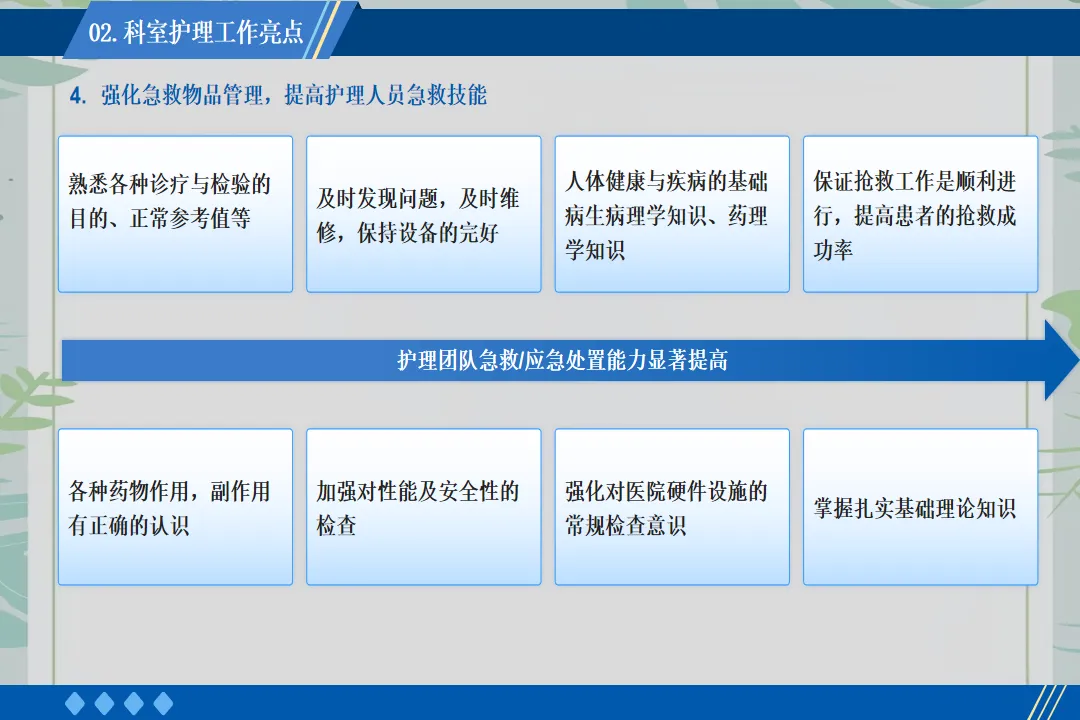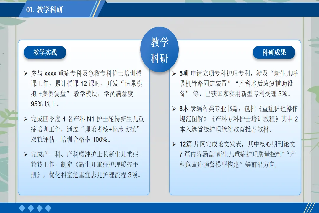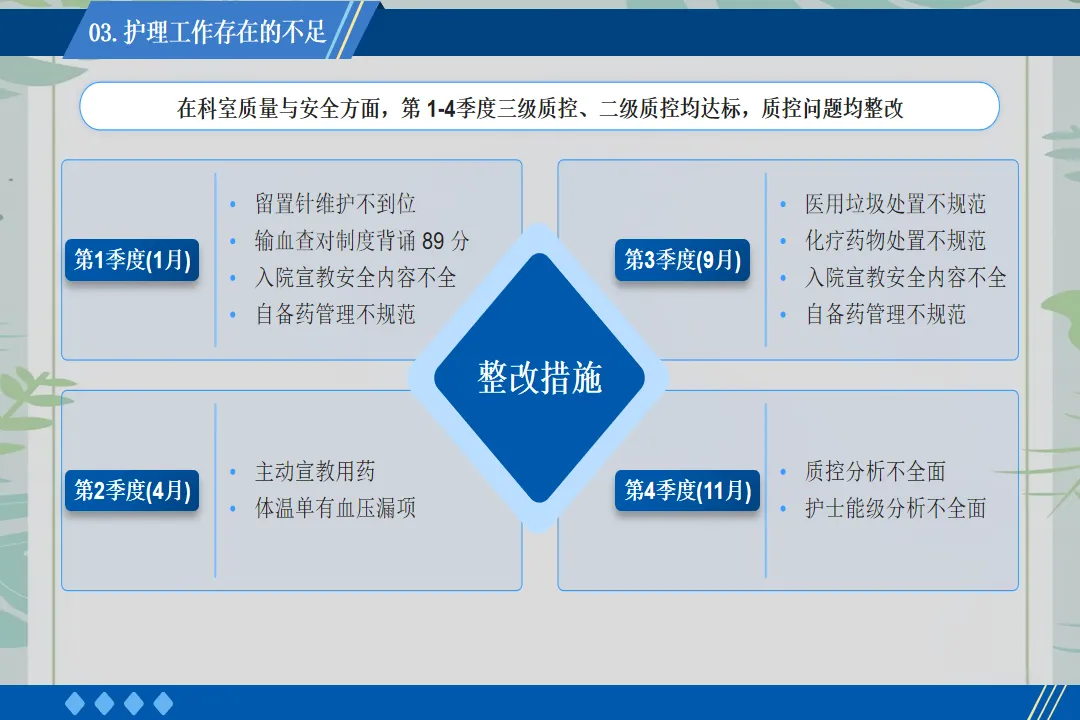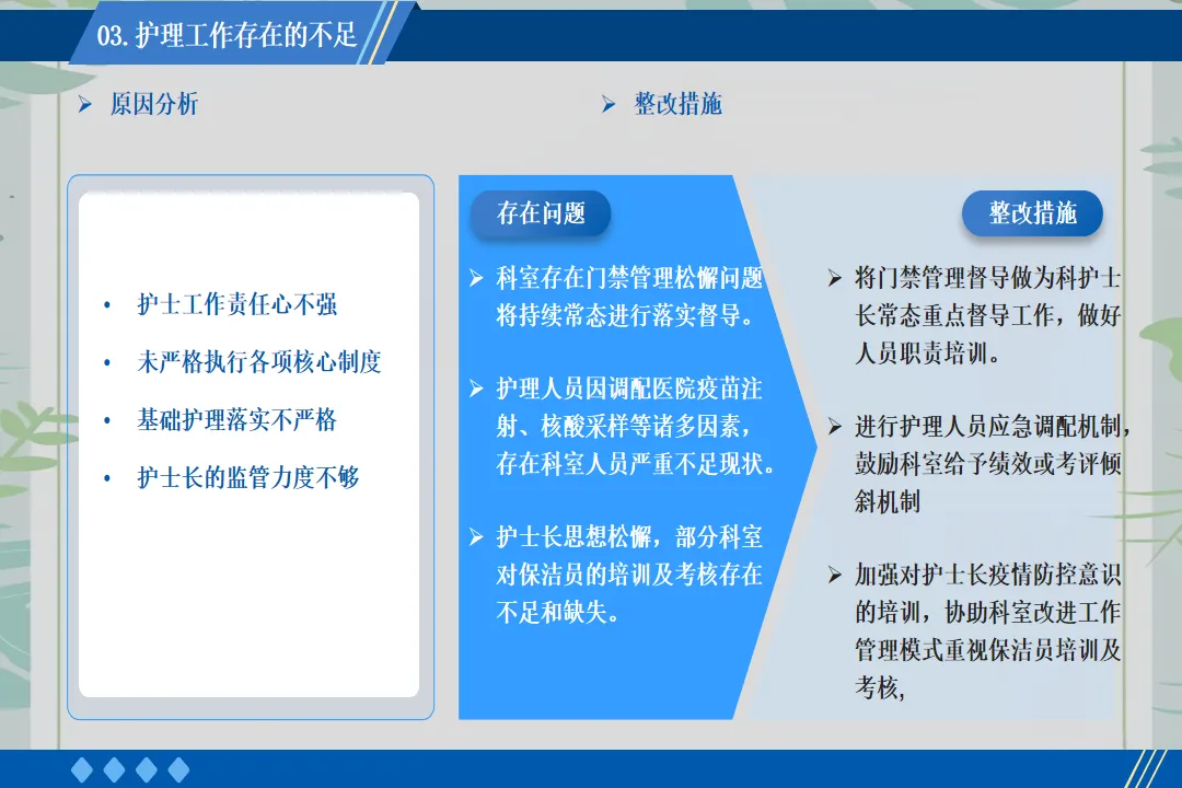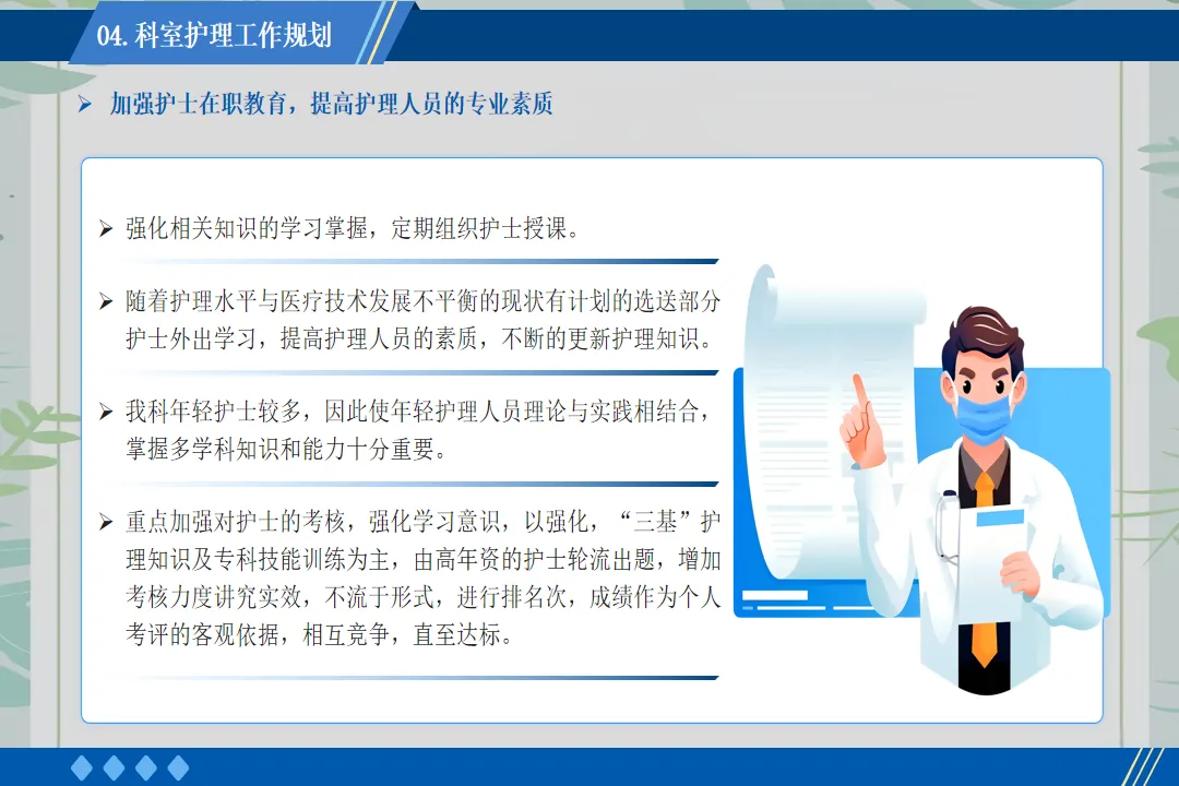 回顾这一年的工作,也存在一些不足之处,如护理科研项目开展较少、部分年轻护士应急处理能力有待提升。在未来的工作中,我将带领团队加强科研学习,组织应急演练,不断提升护理团队的综合能力,为患者提供更优质的护理服务。