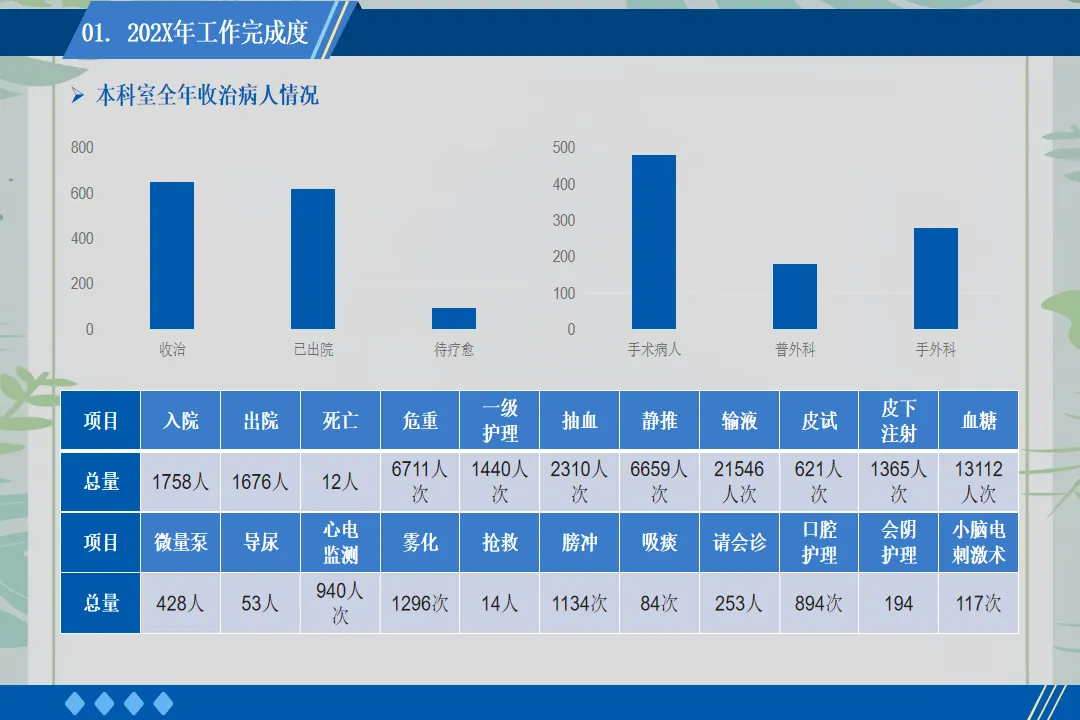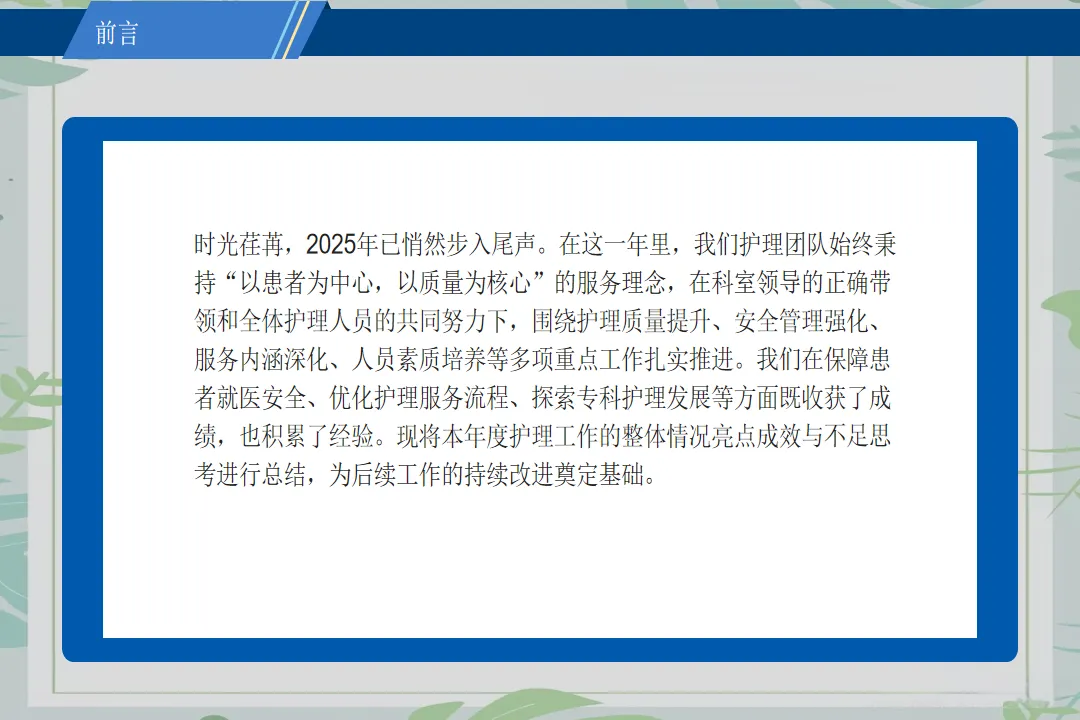 时光荏苒,转眼又到了年度述职的时刻。作为一名护士长,这一年在病区的日常管理、团队建设和患者服务中,我不断积累经验,也经历了诸多挑战,现将一年来的工作情况总结如下。
