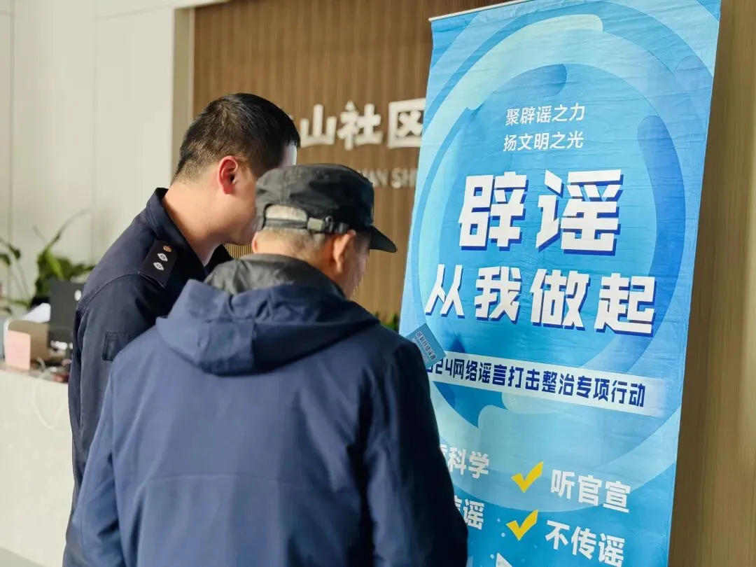 12月8日,尖山社区联合黄湾派出所开展打击谣言宣传活动。