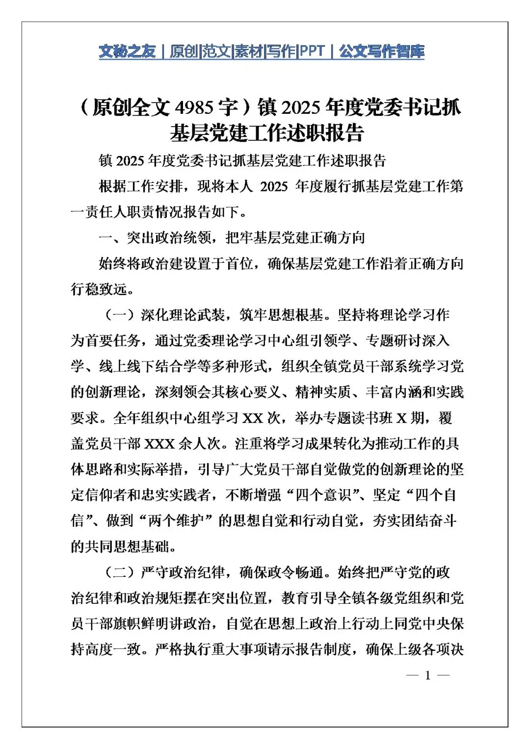 今天聊《镇2025年度党委书记抓基层党建工作述职报告》的写作角度,它完全贴着镇党委书记的岗位——抓“政治统领”里的理论武装、纪律规矩,落“固本强基”的支部建设,连责任传导用“考核挂钩、约谈提醒”的镇域管理逻辑,没半点虚的。