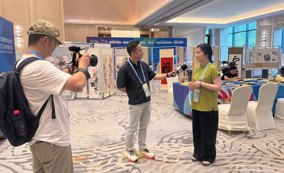 福宝•石壶画会副会长岳翊南在世运会期间接受央视采访