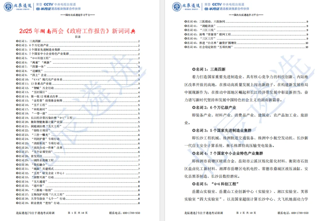 《2025湖南两会〈政府工作报告〉新词词典》聚焦报告核心新词,直击省情政策类考题考点,是省情备考的提分关键素材。