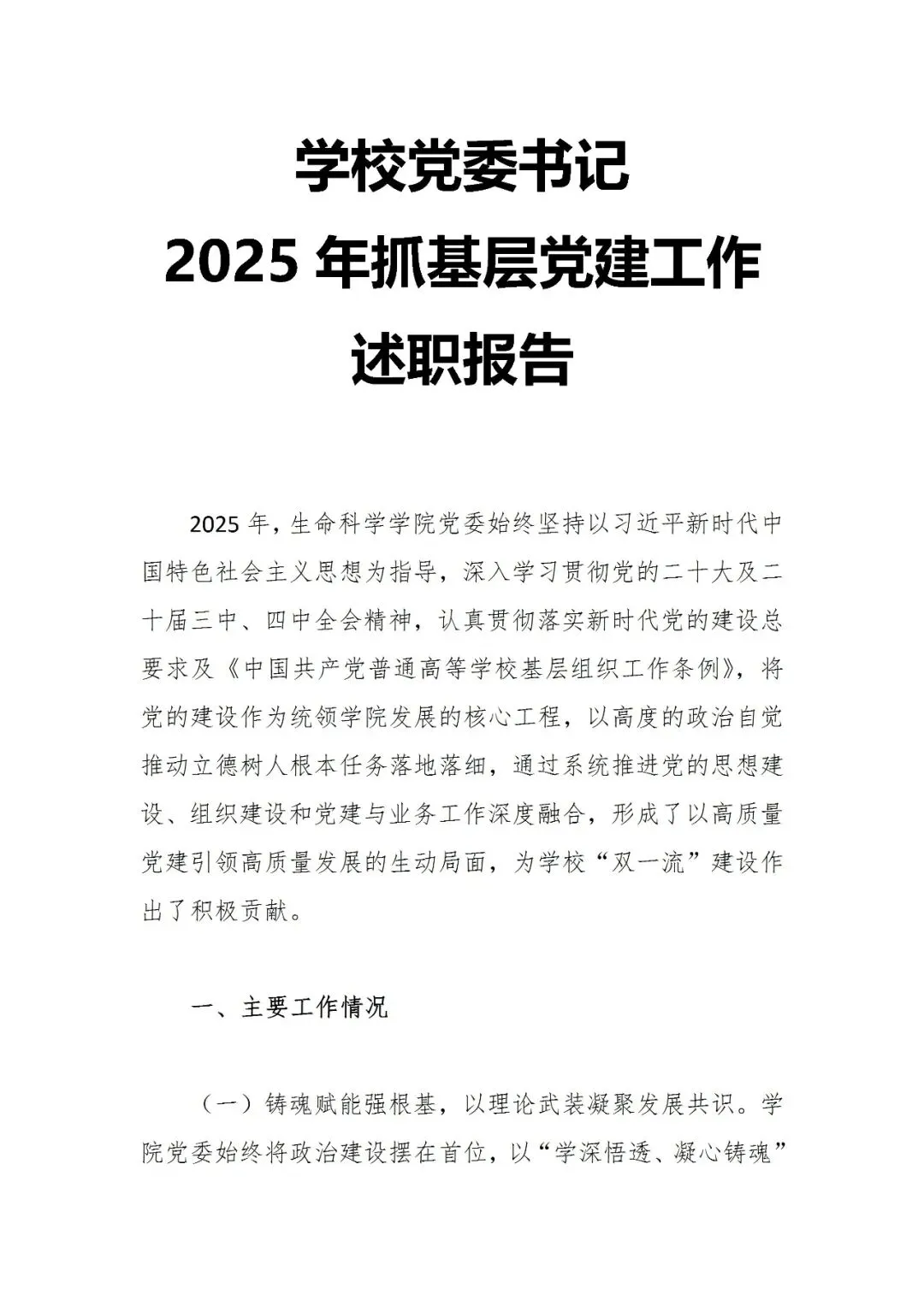 >学校党委书记2025年抓基层党建工作述职报告word版