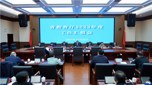 12月23日,省教育厅召开2023年度工作总结会,对学习贯彻党的二十大精神和省委十三届三次全会精神,推进教育强国、特色教育强省建设进行系统盘点,总结成绩经验,全面分析和科学谋划2024年工作。省委教育工委副书记,省教育厅党组书记、厅长邹联克主持会议并讲话。