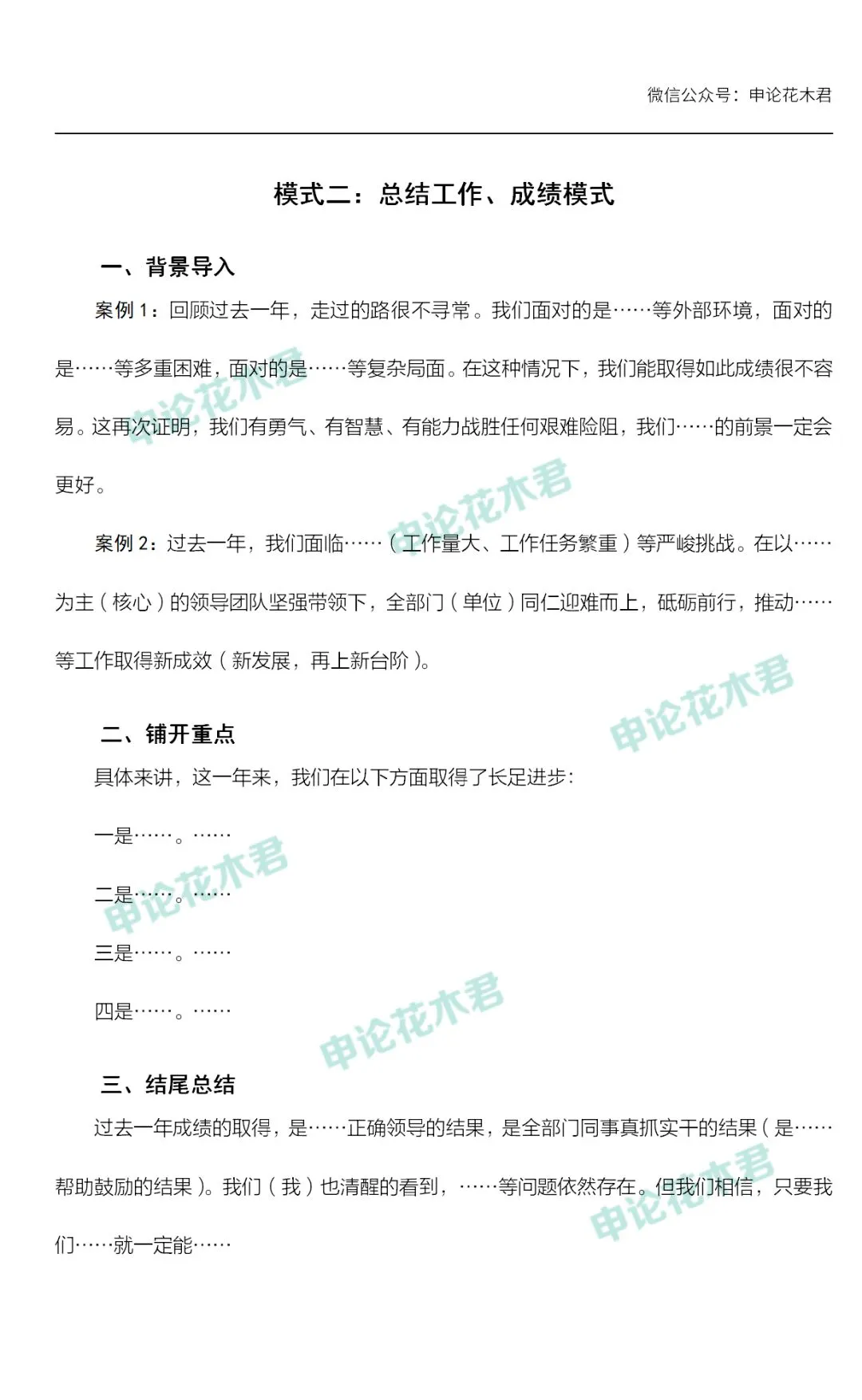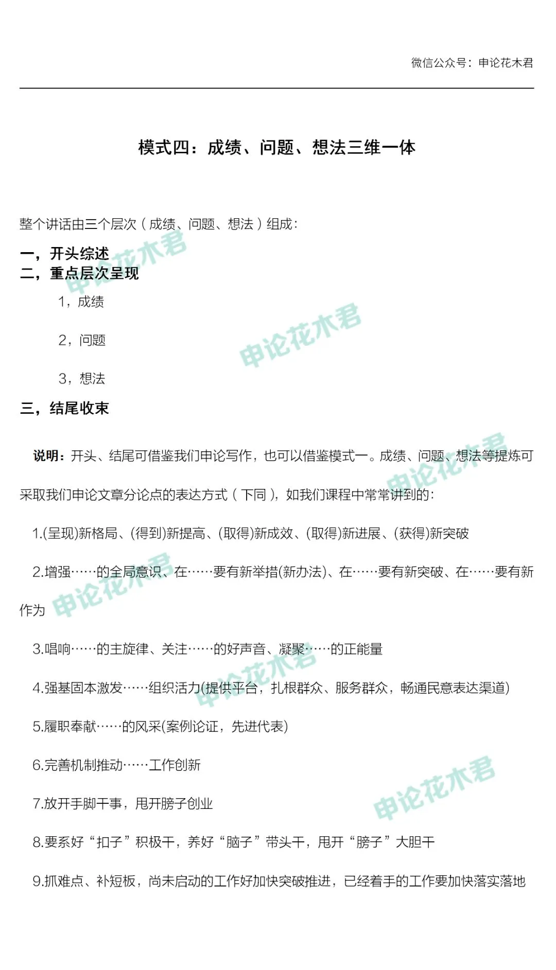 将我们在花木君申论课程中所学习到的方法、知识进行汇总