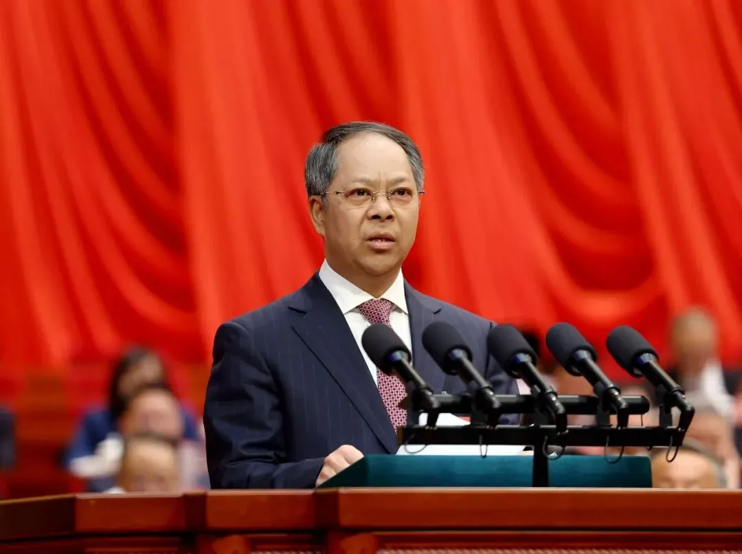 1月26日上午,省十四届人大二次会议举行第二次全体会议。图为省人大常委会副主任陶长海作省人大常委会工作报告