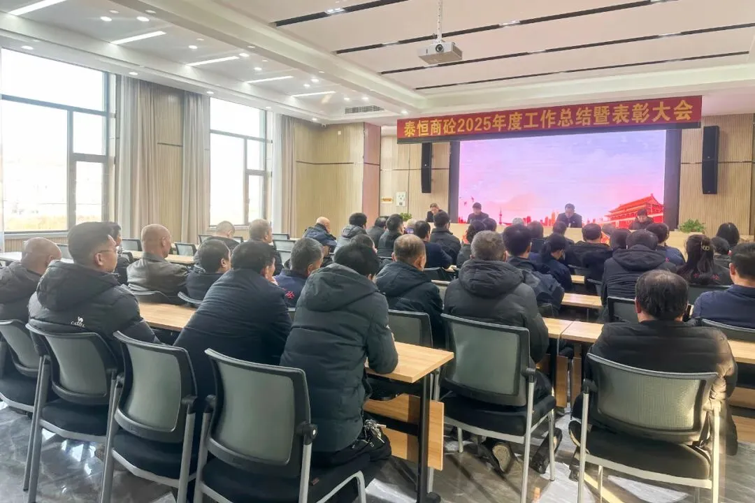 1月4日,泰恒商砼召开2025年度工作总结暨表彰大会。泰化集团副总经理、泰恒商砼总经理王爱忠,商砼领导班子及全体员工齐聚一堂,总结过去一年的奋斗成果,擘画新一年的发展蓝图。会议由泰恒商砼副总经理张海河主持。