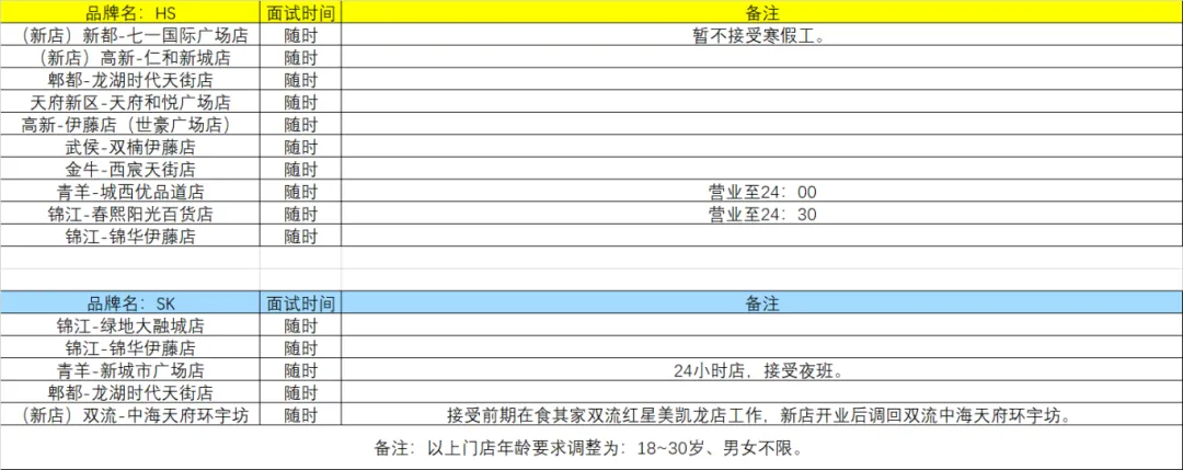 岗位要求:18-30岁、男女不限;身高155cm及以上,无纹身、无夸张染发(大红大绿等);无皮肤病、无过敏食材,适合从事餐饮行业相关工作;具备正常的表达能力及沟通理解能力