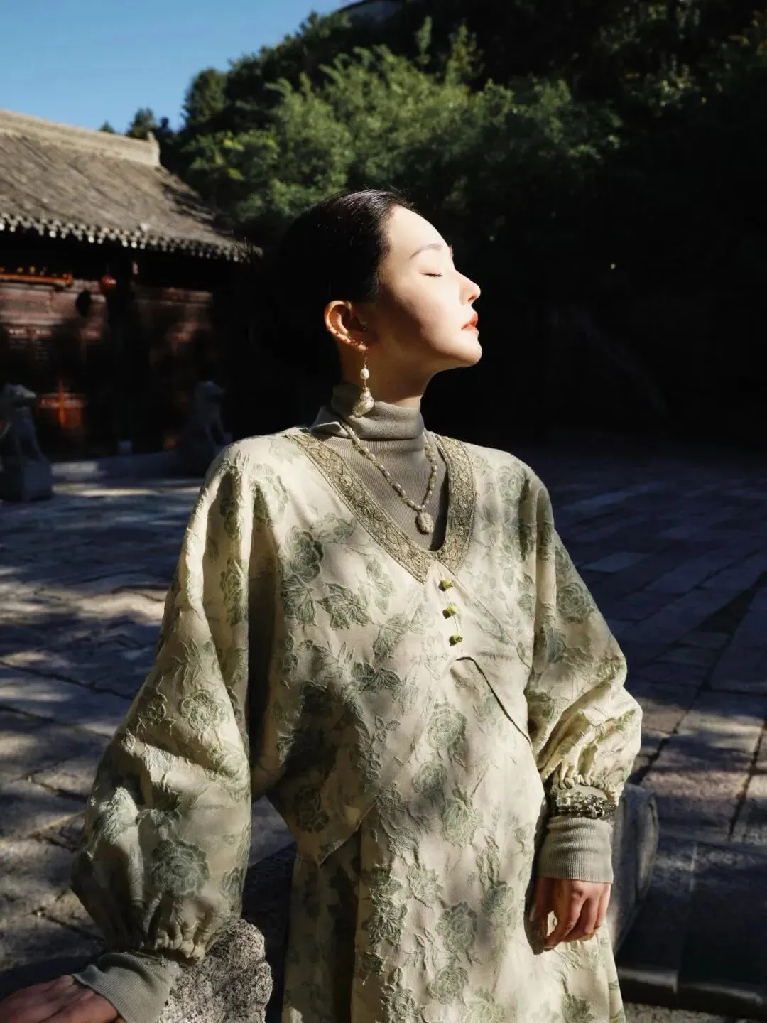 然后就是染间渡,郭总一直鼓励我做一个适合我风格,也许不是那么日常,但是非常有个性的品牌,于是就有了这个关于新中式的尝试和表达。UMILAB做到现在,没有初始时期那么强调暗黑系风格,因为我自己的品位已经有所改变,现在整个状态就是特别松弛,既然已经长成了现在的样子,我就应该去设计更适合这个阶段的衣服。因为小时候学过很多民族舞,我本身对新中式风格非常喜爱,我希望姐妹们能通过染间渡,穿出一个特别“富有”的感觉。这个富有不只是外在,而是由内而外的富足和光彩,不用特别在意身材和搭配,也能轻松穿出松弛和贵气。