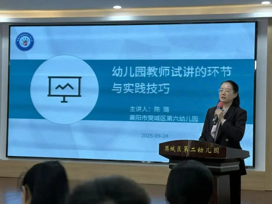 9月24日,在樊城区第二幼儿园举办“聚焦核心经验,深耕集体教学”专题培训,50 余名工作室成员及责任区教师参与。樊城区第二幼儿园王绍辉老师的大班综合活动《童言画襄阳》、樊东教工幼儿园郭志芳老师的大班科学活动《魔法厨师实验室》,创新融入 AI 趣味教学元素,以优质课展示为教师提供具象化、可借鉴的教学范例;樊城区第二幼儿园胡吉天老师分享从备考到入职的成长感悟,传递深耕幼教的职业追求;温馨园长围绕“科学活动的组织设计”展开专题讲解,从活动目标设定、内容选择、环节设计到资源运用,结合典型案例进行细致拆解,为教师提供科学活动设计的清晰思路与实用方法;陈璐园长聚焦“教师试讲的环节与技巧” 进行深度赋能,从试讲核心环节拆解、重难点突破策略、教学语言优化等方面系统讲解,帮助教师厘清试讲逻辑,掌握提升试讲质量的关键技巧,切实破解集体教学设计与试讲中的难点问题。