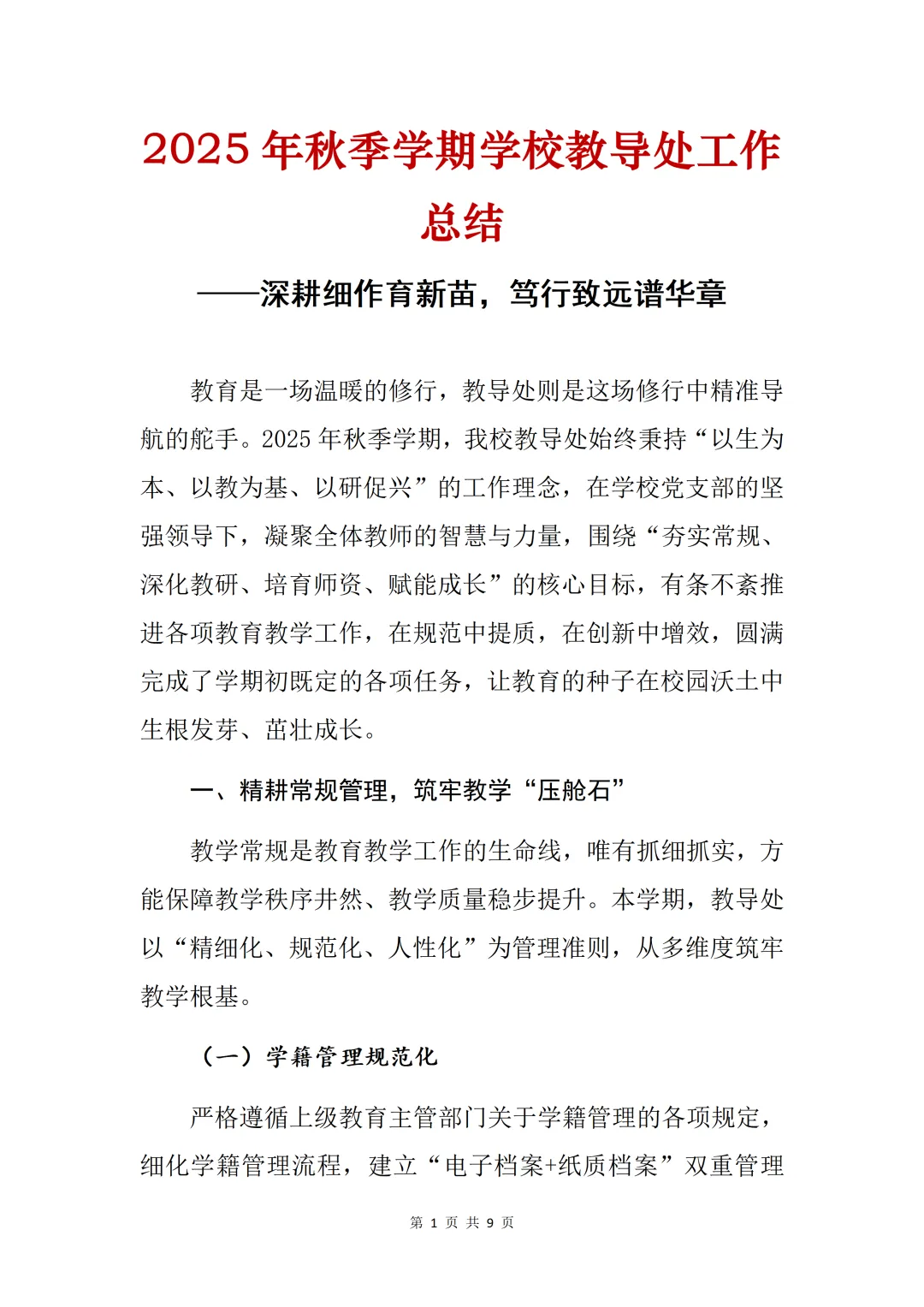 2025年秋季学期学校教导处工作总结:深耕细作育新苗,笃行致远谱华章