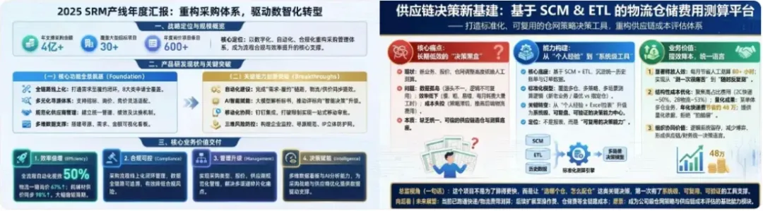 就在我放弃AI准备手搓PPT的时候,我想到了最近生图能力强到爆炸的 Nano Banana Pro,于是我先把一个项目完整的文档资料全丢给 ChatGPT 或 Gemini 3 Pro,先整理出能生成一页PPT内容的提示词,然后把提示词直接丢给 Nano Banana Pro 生图模型。结果直接惊艳到我了,它直接给我输出了一张远超我预期的PPT图片,暂且不说样式能不能直接用,但是里面的内容结构和排版逻辑,简直完美!就好比一个比你聪明10倍不止的人效率还比你高10倍不止!