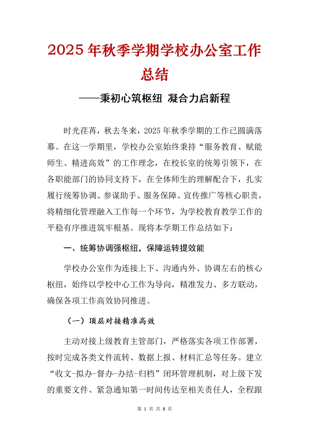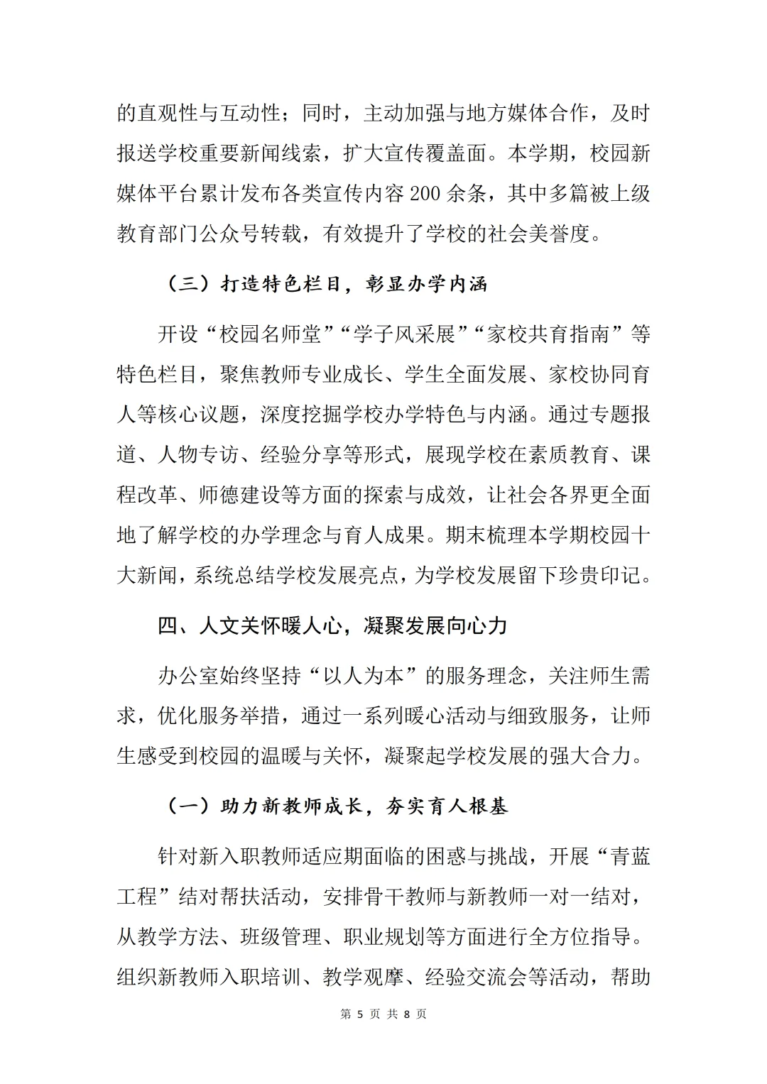 2025年秋季学期学校办公室工作总结:秉初心筑枢纽 凝合力启新程