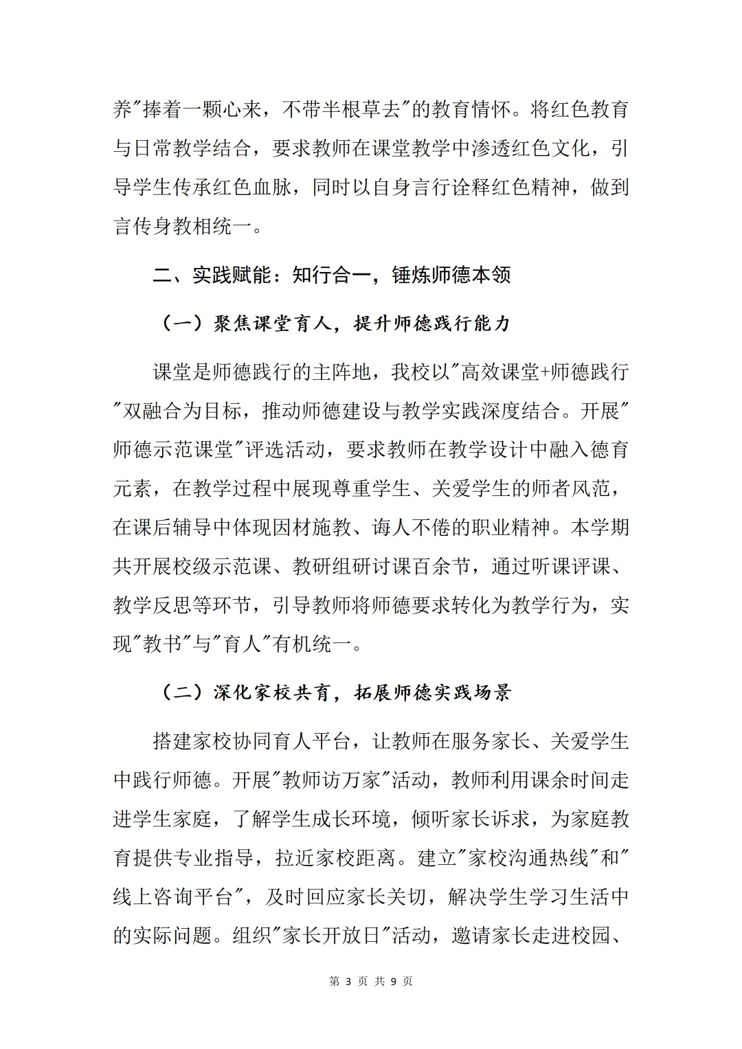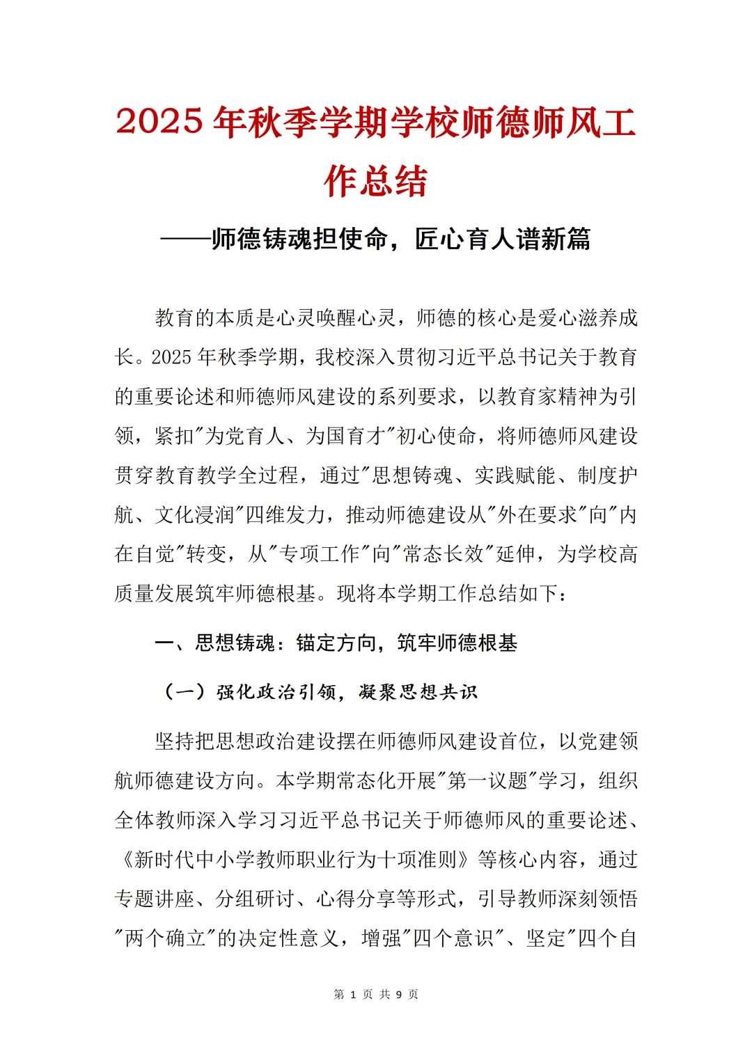 2025年秋季学期学校师德师风工作总结:师德铸魂担使命,匠心育人谱新篇