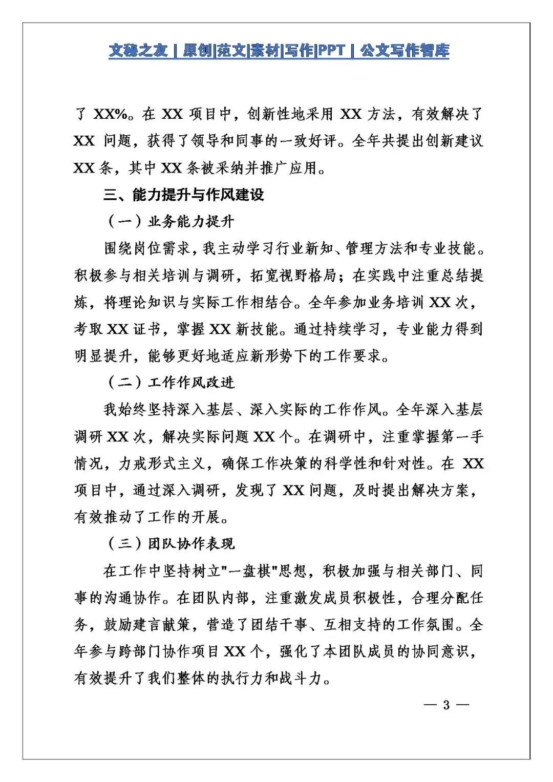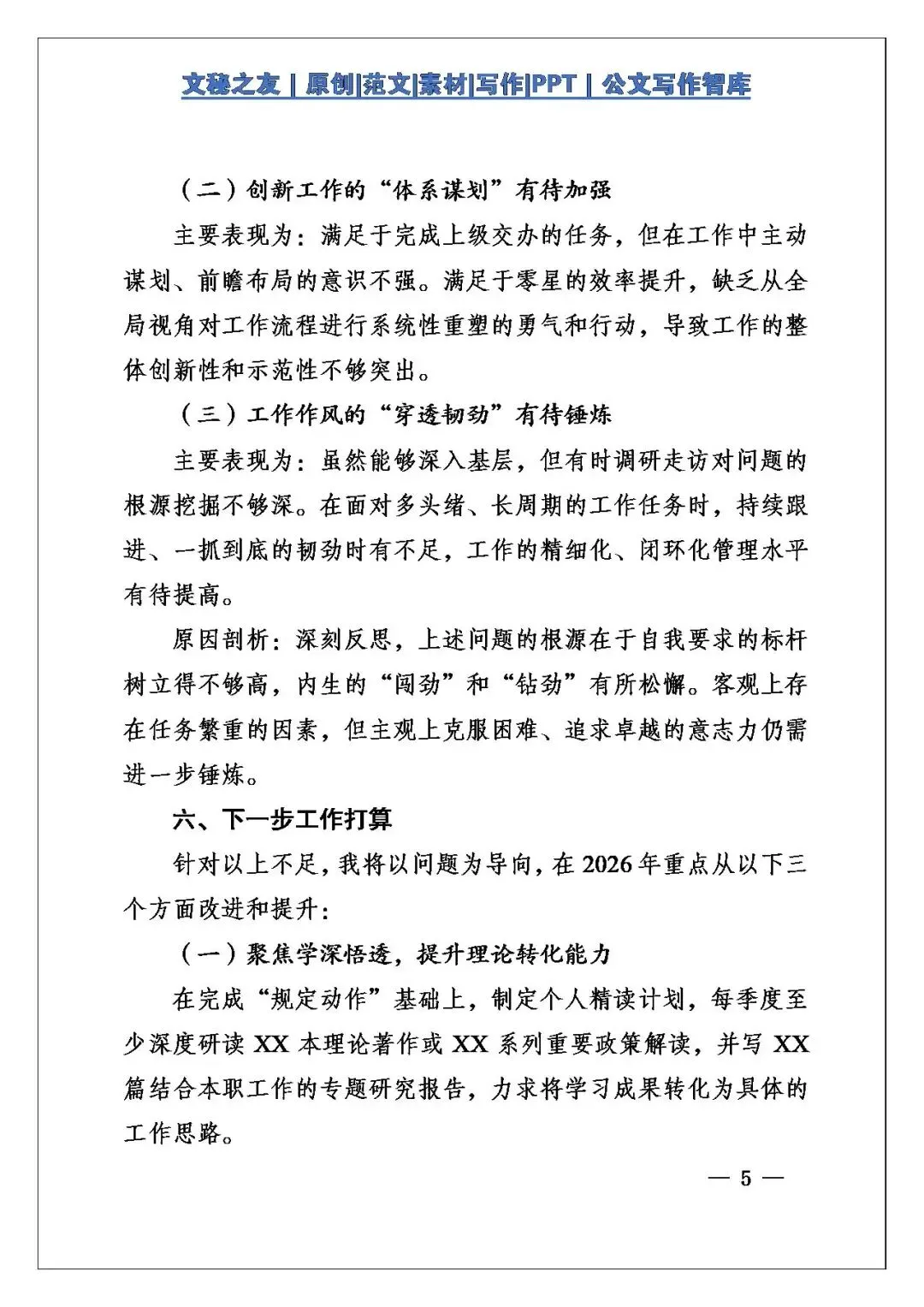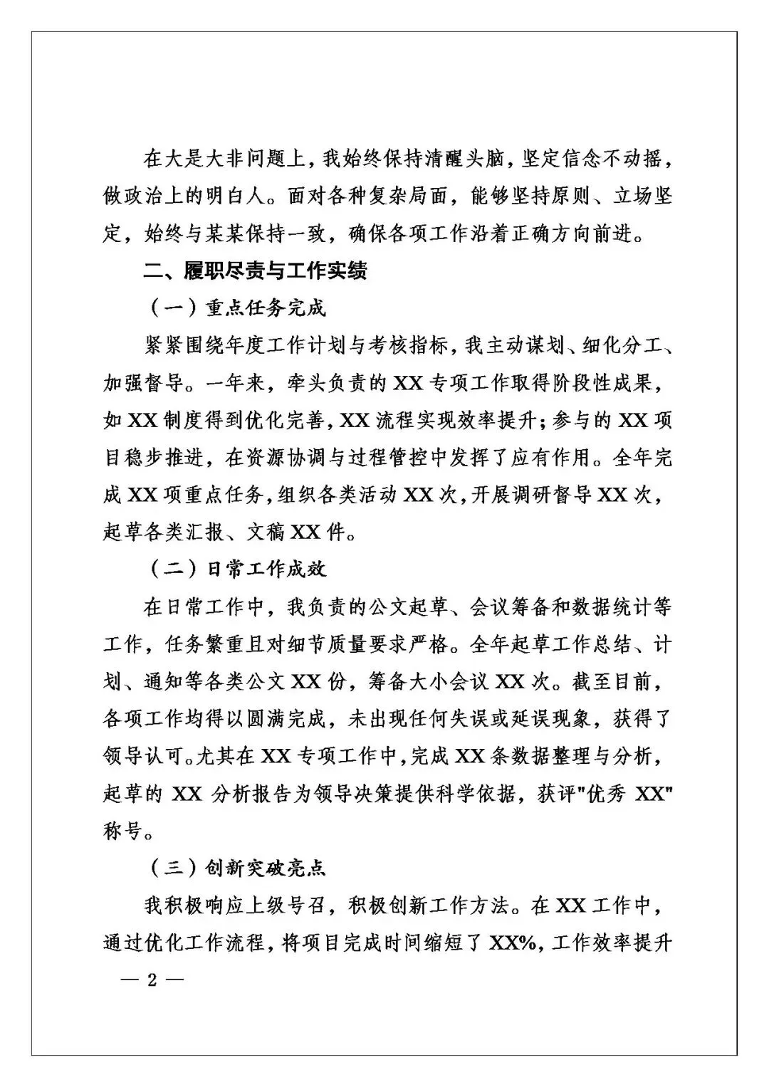 语言这个视角,平实且严谨。像“全年起草工作总结、计划、通知等各类公文XX份,筹备大小会议XX次”,用具体数据说话,增强说服力。,部分表述确实常规,若能多增添一些个性化、有亮点的语言,会让报告出彩。另外,在排比运用上不算突出,若能根据行文需要适当增加排比句式,可增强语言气势与节奏感。