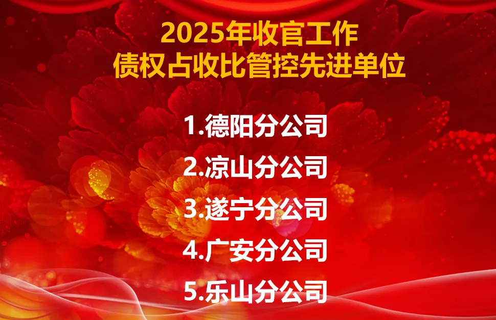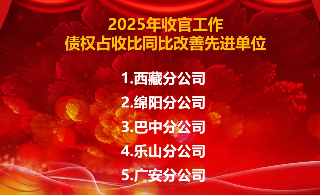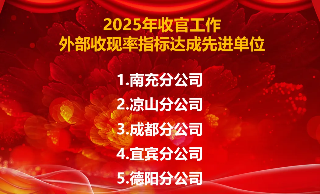 1月5日,四川分公司召开收官工作总结会暨“开门红”部署会,全面总结2025年工作,表彰先进,并部署2026年“开门红”重点工作。会议主会场设在省分公司六楼大会议室,公司领导班子成员、机关各部门(中心)负责人、所属市州分公司领导班子及部门负责人参会。