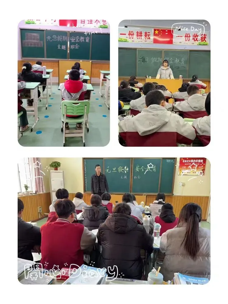 本周召开"元旦假期安全教育"主题班会,重点讲解交通安全、消防安全及饮食卫生等注意事项,通过案例分析增强学生安全防范意识,引导学生合理规划假期生活。