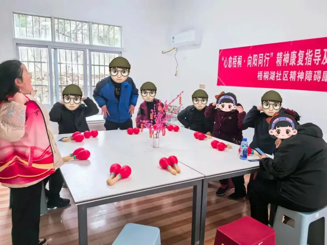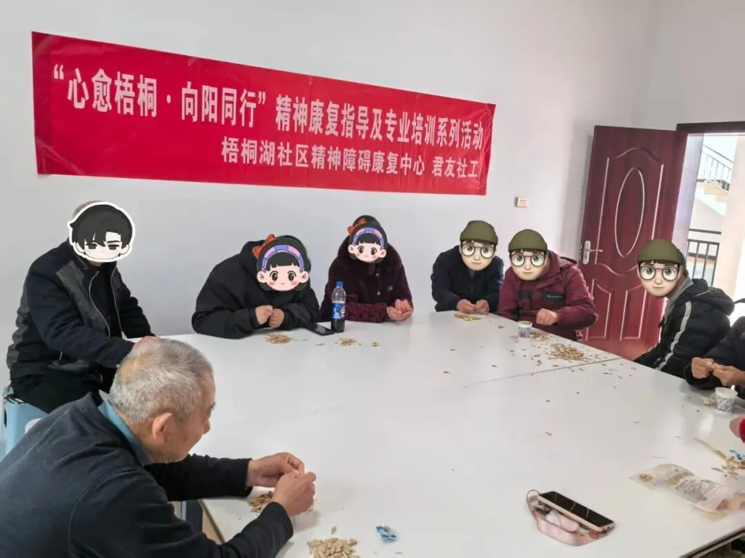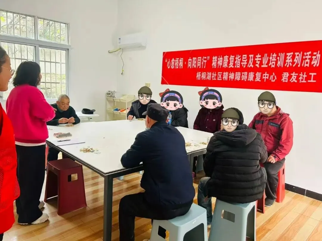 12月12日在梧桐湖园区精神障碍康复中心展开了“心愈梧桐・向阳同行”系列的技能培训服务,此次活动聚焦精神障碍康复者的社交联结与心理支持,助力康复者在社区支持中逐步回归日常、重建信心。