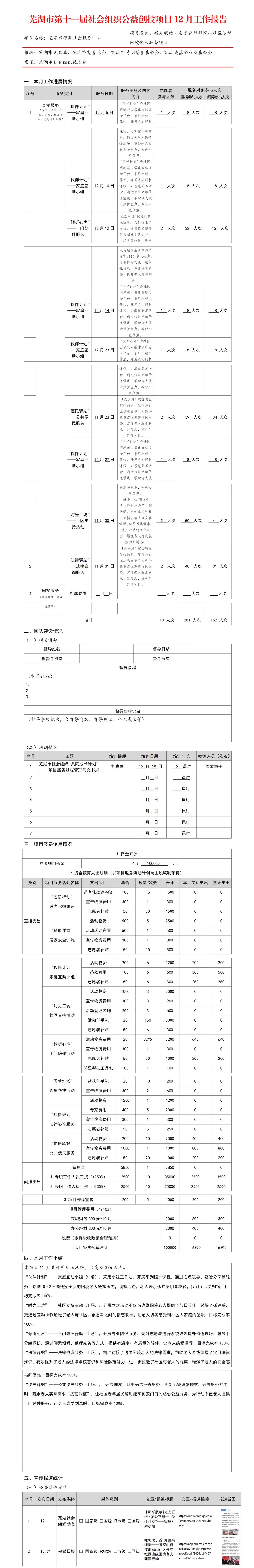 >芜湖市第十一届社会组织公益创投项目12月工作报告【2026年第7期总第3681期】