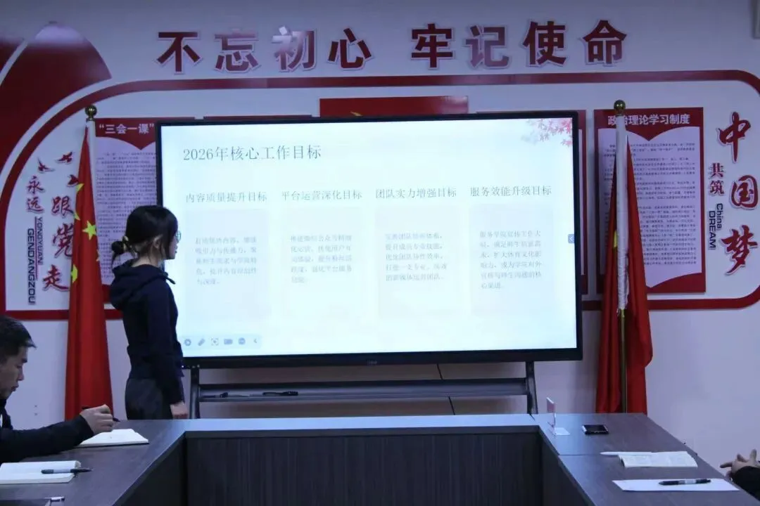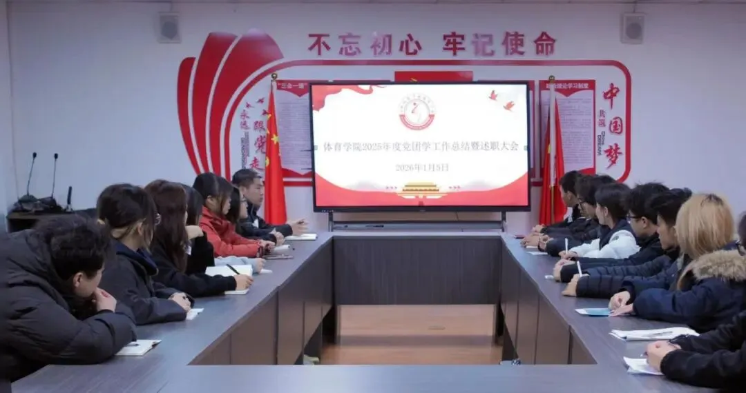 为全面总结2025年度工作成效,明晰2026年工作方向,进一步凝聚团学力量。1月5日,体育学院举行团学工作总结暨述职大会。体育学院党总支书记、学工副院长宋欧,团总支书记、学工秘书张业波,各部门负责人共同参会,为学院团学工作的高质量发展建言献策。本次会议由张书记主持。