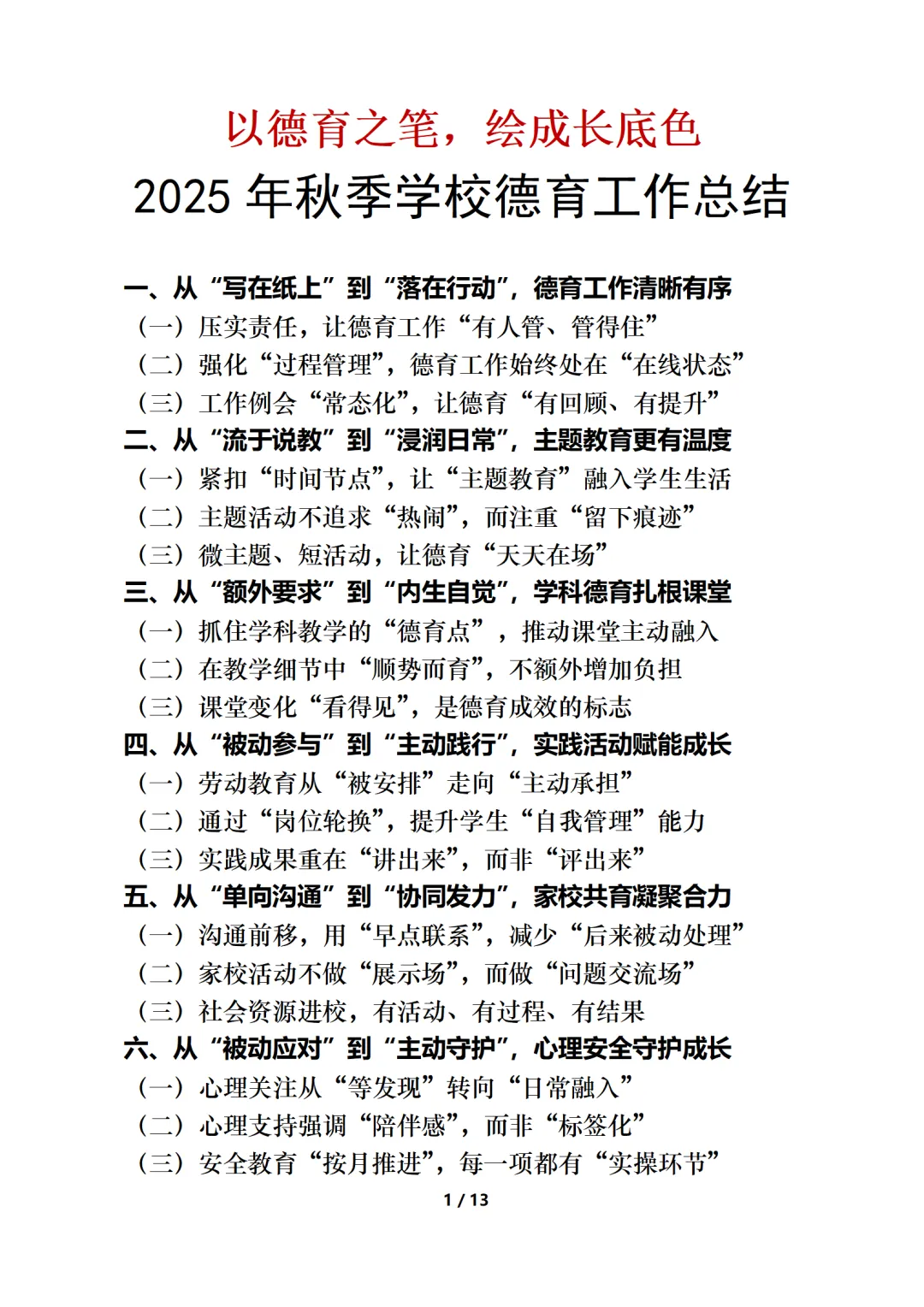 不知不觉,这个学期已经接近尾声了!今天为大家推荐一份德育工作总结PPT,回顾2025年秋季学期,这份PPT没有华丽辞藻,却藏着许多接地气、可复制的实操经验!如果你也在思考如何让德育真正“落地生根”,这篇总结或许能给你启发✨