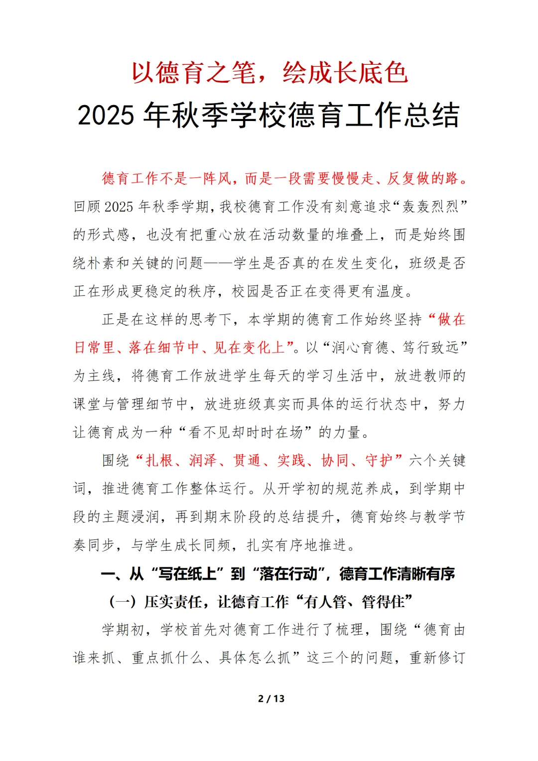 🌱 比如通过微主题、短活动(如“课间两分钟文明观察”),让德育如呼吸般自然融入校园生活。