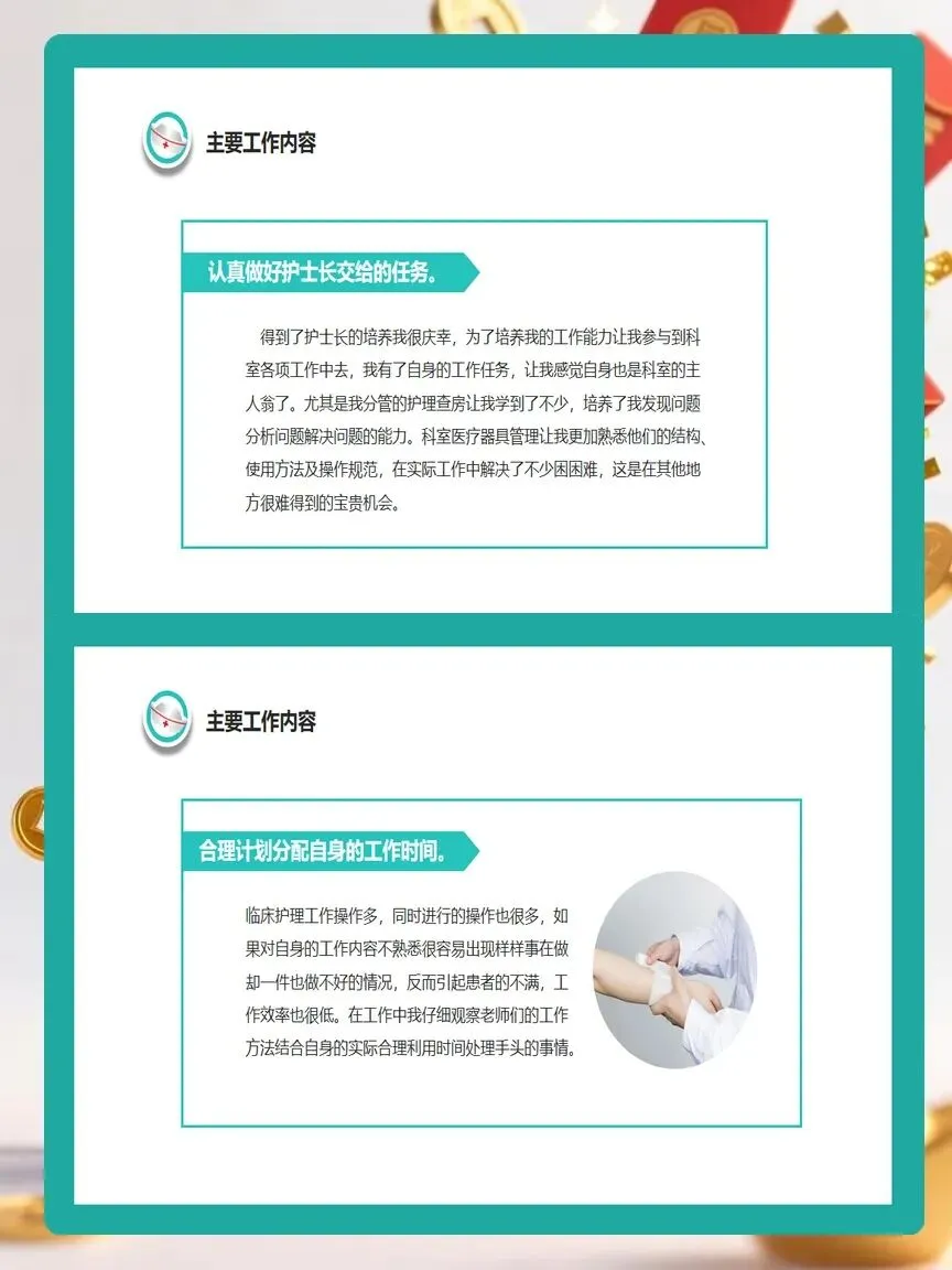 在临床一线,我们是生命的守护者。从晨曦微露到夜幕降临,我们穿梭在病房的各个角落,进行生命体征监测、执行治疗护理措施、观察患者病情变化。在疫情防控的关键时期,我们主动请缨,奔赴隔离病房,穿着厚重的防护服,克服身体和心理的双重压力,为患者提供24小时不间断的护理服务。记得一位确诊的老年患者,因焦虑情绪拒绝治疗,我们耐心陪伴在他身边,为他讲解病情、安抚情绪,最终让他积极配合治疗,康复出院。这样的经历,让我们更加深刻地体会到护理工作的责任与意义。
