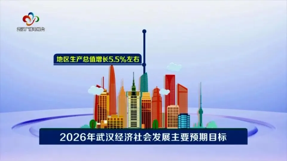 《政府工作报告》提出,2026年武汉经济社会发展主要预期目标是:地区生产总值增长5.5%左右,在实际工作中努力争取更好结果;城镇新增就业25万人以上;居民消费价格涨幅2%左右;居民收入增长与经济增长同步;生态环境质量持续改善,完成省下达的降碳减排任务。