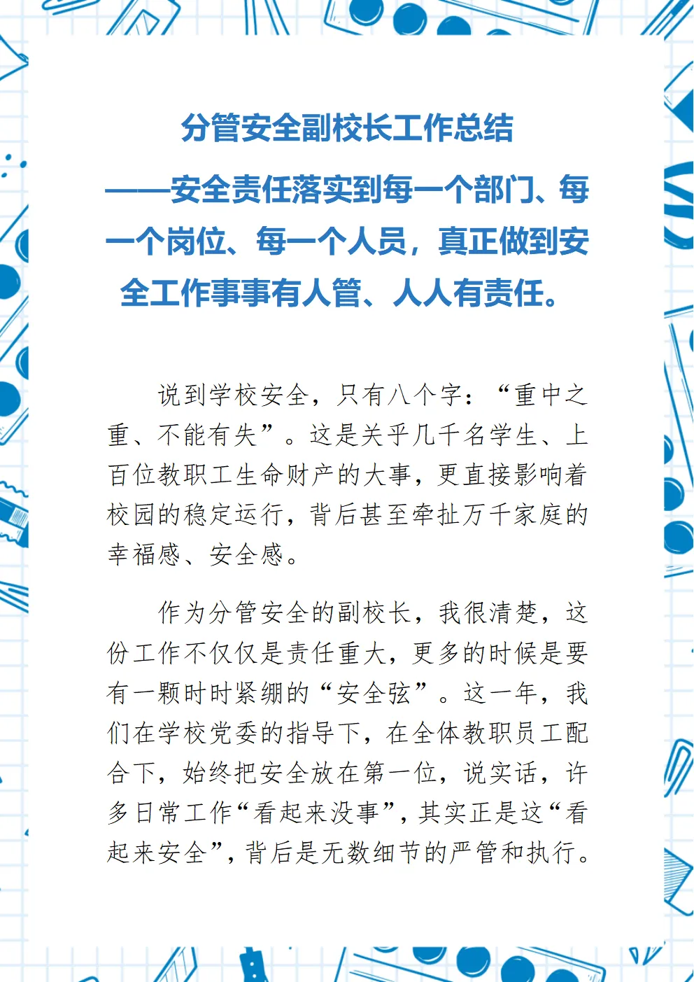 安全副校长工作总结