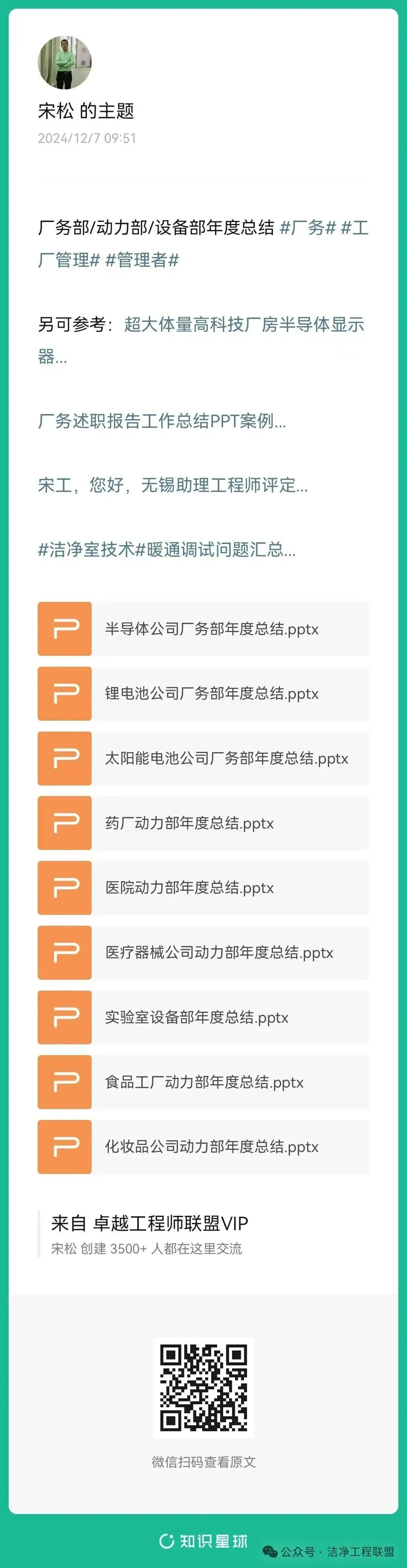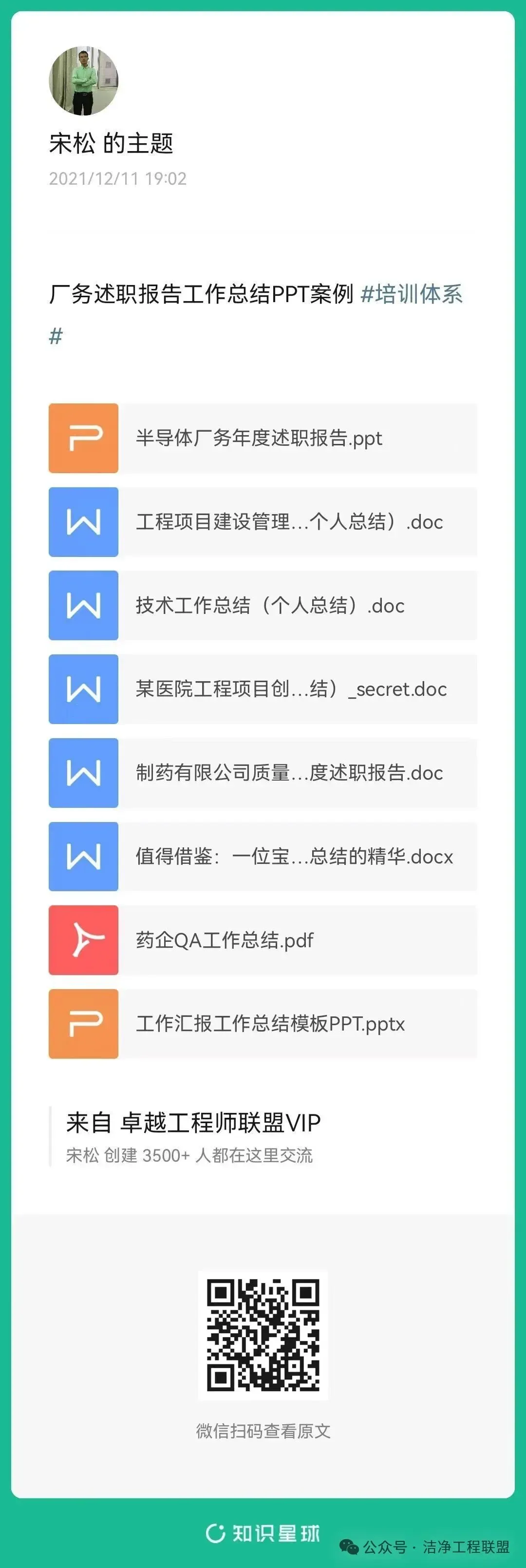 知识星球创建于2020年4月2日,持续运行(每天上传资料&回答问题)超过1850天!已上传知识星球APP的30260+份文件均支持手机在线阅读及电脑下载,资料包括洁净室系统设计、选型计算、生产工艺、工程技术、规范图集、知识问答、培训课件、厂务运维、BIM族库等各类学习资料/模板/图纸,知识星球现有VIP会员3500位+,期待你的加入!