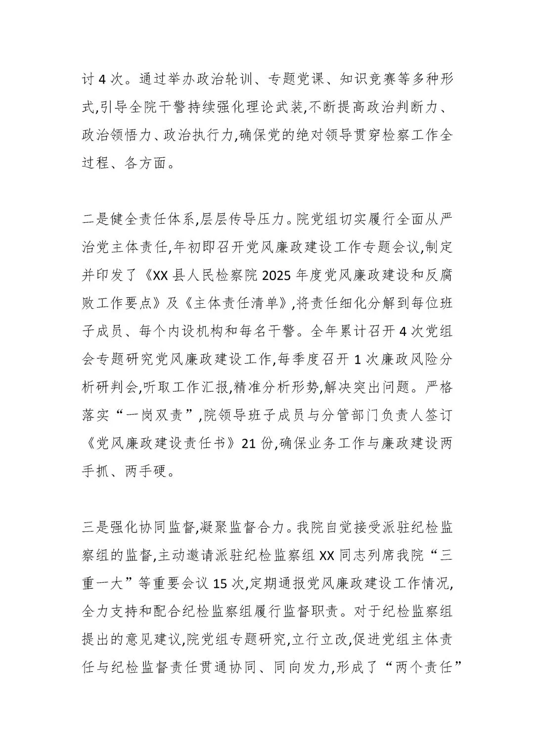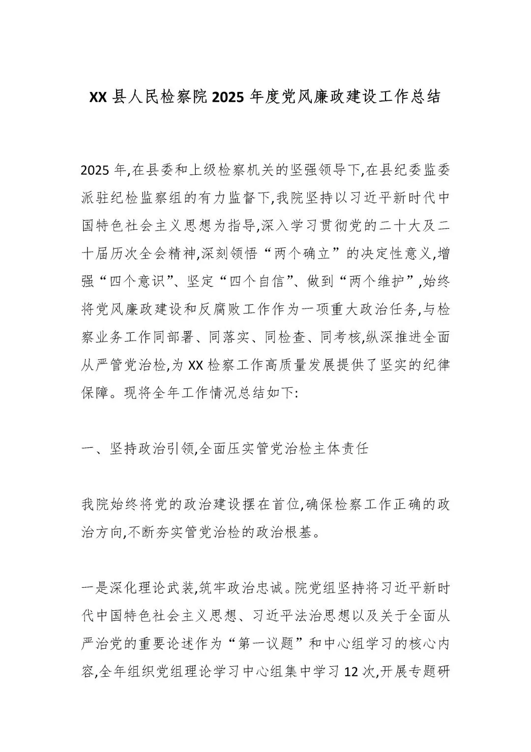 XX县人民检察院2025年度党风廉政建设工作总结(3598字)