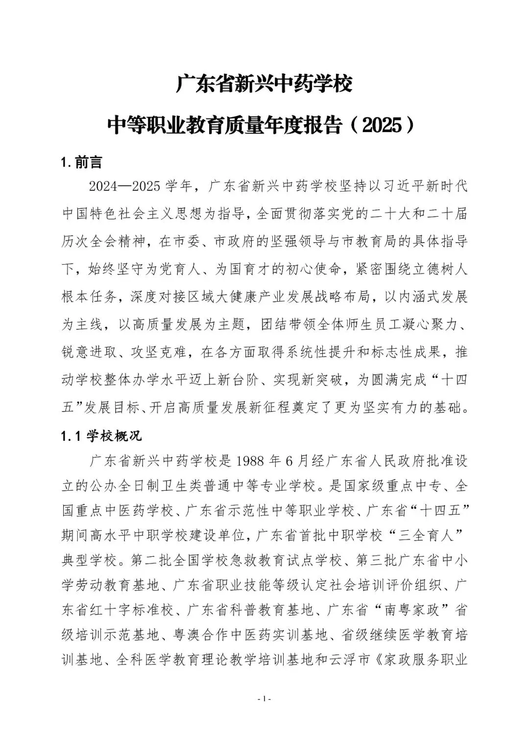 >广东省新兴中药学校中等职业教育质量年度报告(2025)