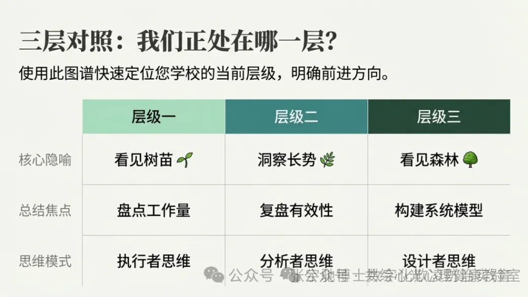 因此,我们可以尝试用图解的方式,把学校心理健康工作总结中常被混在一起的三种境界,进行一次清晰拆分。它的目的不是替代文字,而是帮助读者在最短时间内完成定位与判断。