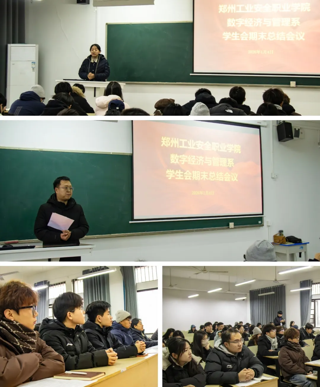 2026年1月4日下午,数字经济与管理系学生会2025-2026学年第一学期期末总结会在一教1118教室顺利召开。系副主任程戈、学工组长胡蓉、专职辅导员芦庆龙及全体学生会成员参加了会议。会议由胡蓉老师主持。