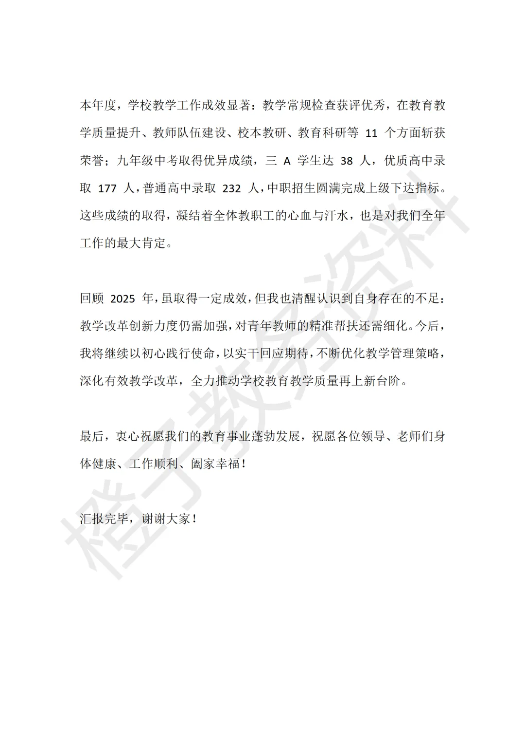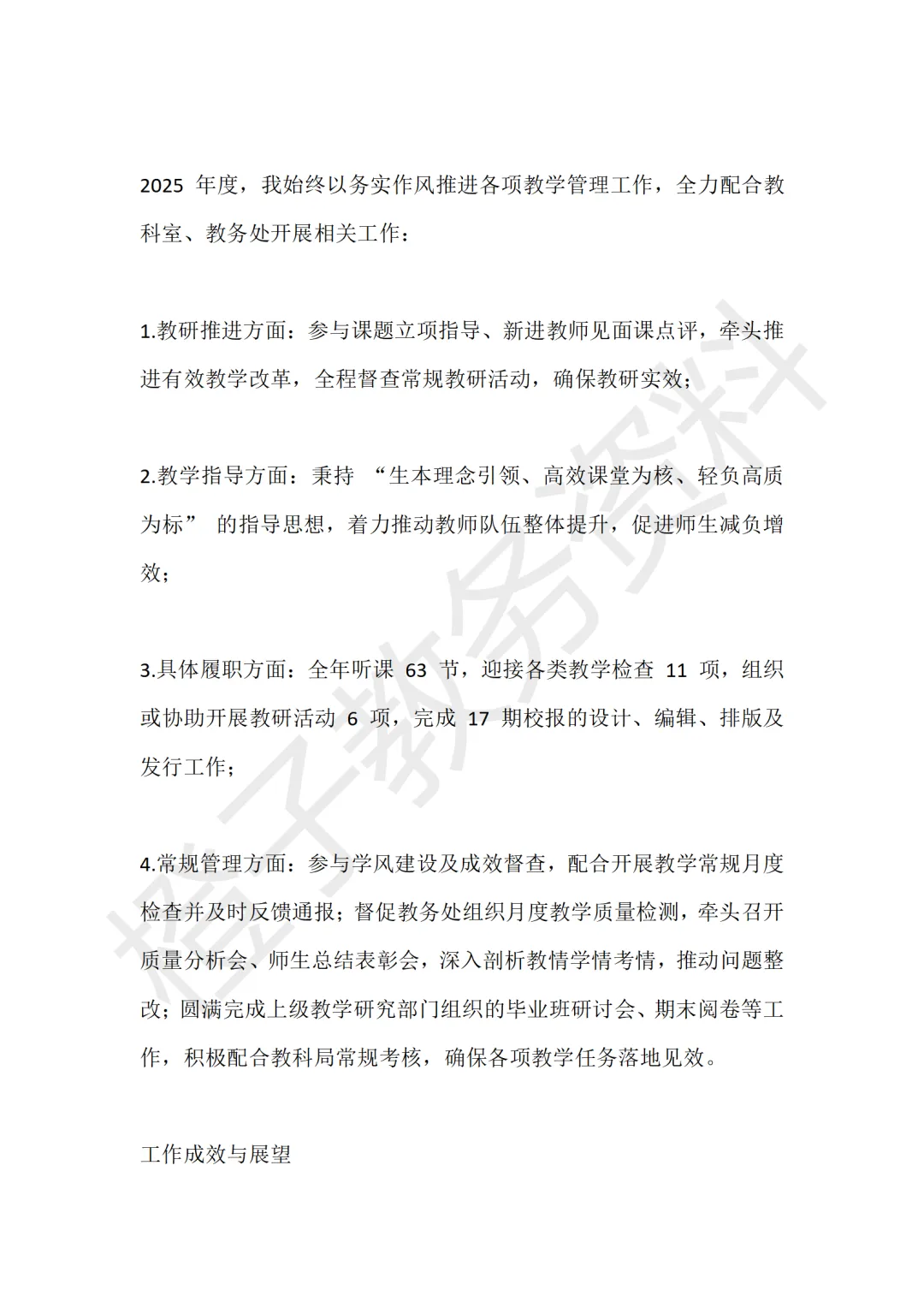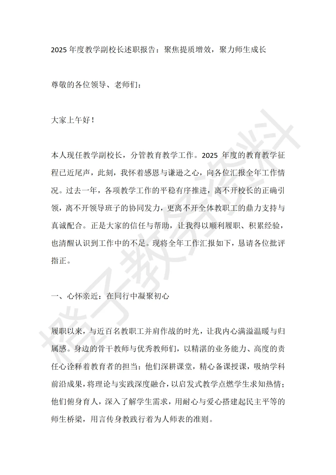 今天分享的是2025年度教学副校长述职报告,主题是《聚焦提质增效,聚力师生成长》。