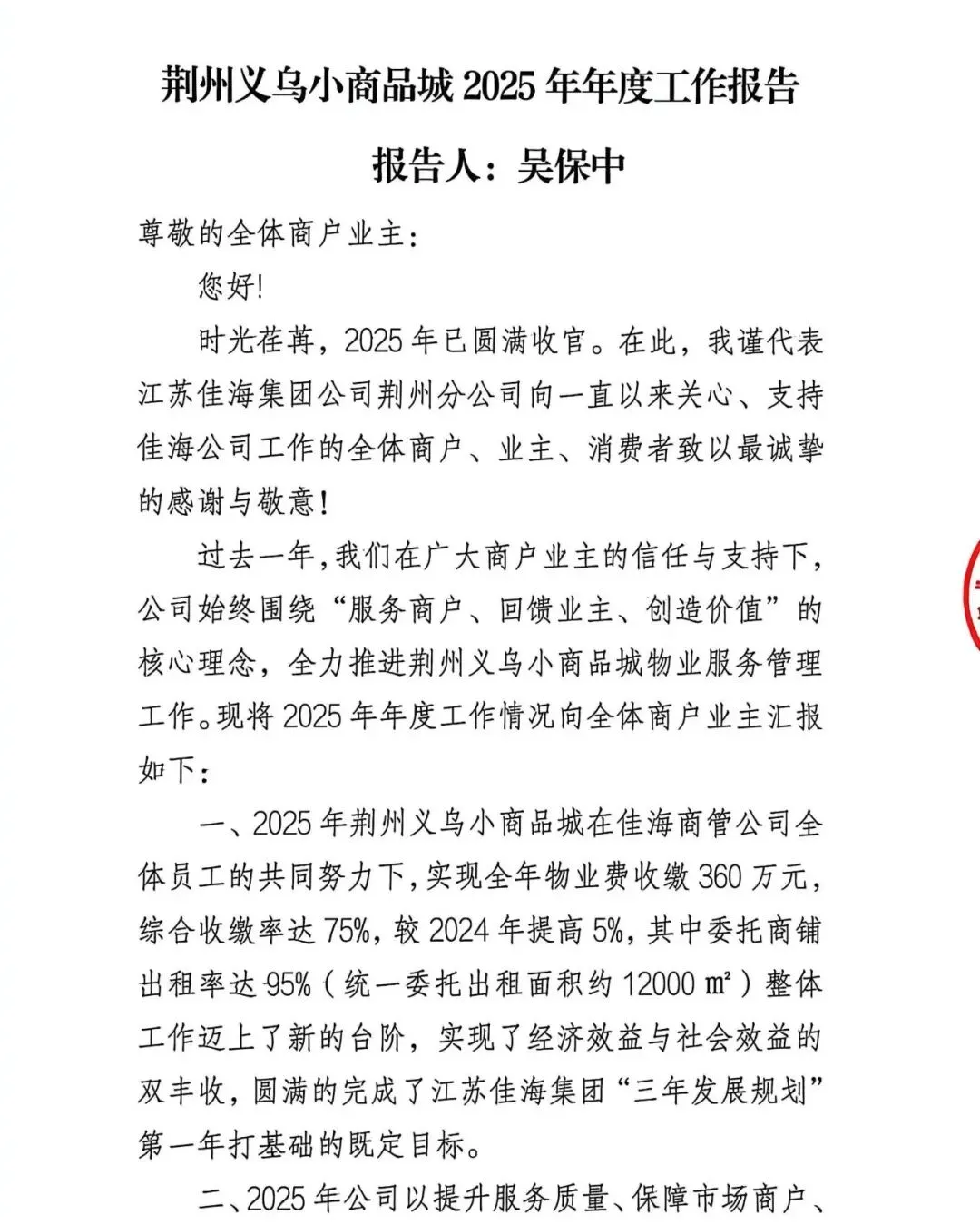 >荆州义乌小商品城2025年年度工作报告