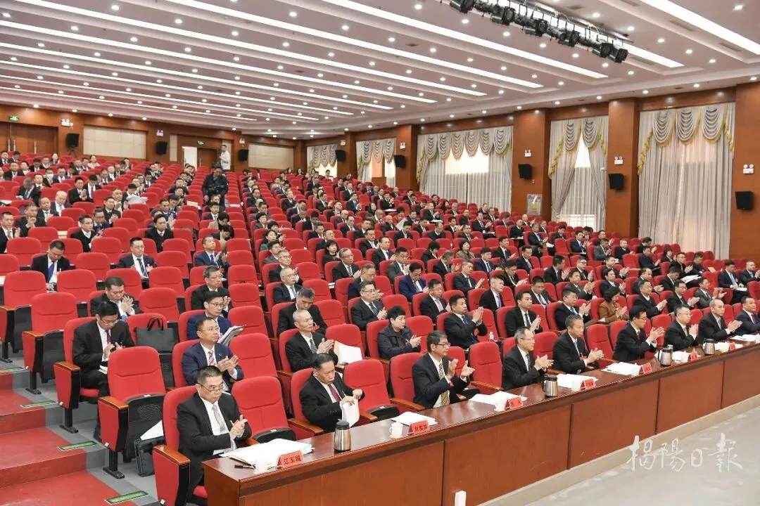 会议强调,2026年是“十五五”开局之年。全市上下要倍加珍惜、坚决贯彻市委“1135”工作思路,做到一张蓝图绘到底、干到底,不断开创揭阳现代化建设新局面。要持续壮大“一化一海五优特”产业集群,持之以恒大抓产业大抓招商大抓项目,掀起产业园区扩容提质大会战,打响延链补链强链精准招商攻坚战,发起项目建设提速提质主动战,打赢服务企业提质增效持久战,加快打造现代化产业体系。要突出关键重点,以“拔杆、拆围、增绿、硬化”全域提升城乡风貌,以强县富民兴村全面做强县域经济,以“放权赋能”“土地增效”改革激发基层动力活力,坚决打好打赢“百千万工程”五年显著变化攻坚战。要抓好城市建设管理,推进古城保育活化提质增效,聚力建好揭阳潮侨坊,全力建设全国性综合交通枢纽和全国性邮政快递枢纽,不断完善城市功能布局,全面加强城市管理,持续提升宜居宜业宜游水平。要用心用情办好民生实事,扩大优质教育供给,深化健康揭阳建设,提升社会保障水平,抓好平安法治建设,在发展中持续增进人民福祉。要全面加强党的建设,旗帜鲜明讲政治抓政治,抓好市县镇村换届工作,持之以恒正风肃纪反腐,持续巩固发展风清气正的政治生态。