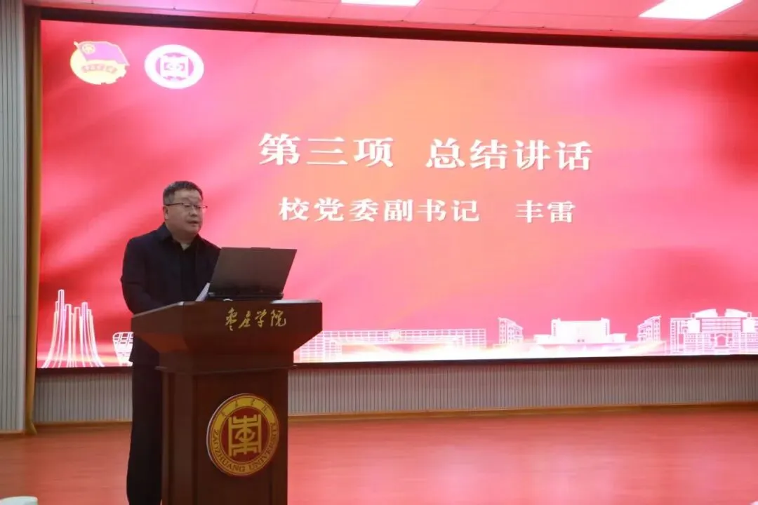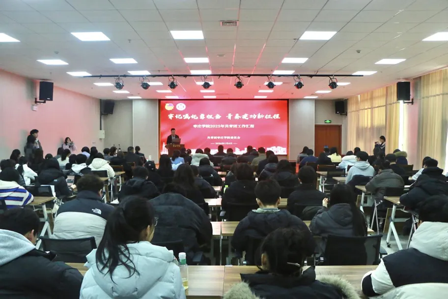 为全面总结2025年度学校共青团工作成效,进一步推动共青团事业高质量发展,1月6日下午,我校在薛城校区明理楼113会议室召开以“牢记嘱托勇担当 青春建功新征程”为主题的2025年度共青团工作总结交流会,校党委副书记丰雷出席会议并讲话。会议由校团委副书记姜周主持。