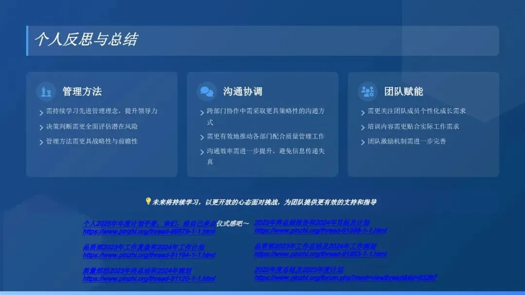 过去一年,在公司领导的关心支持和各部门的协同配合下,我带领质量团队取得了一定的工作成绩,但也存在诸多不足。未来,我将以更加饱满的热情、更加务实的作风,正视问题、补齐短板,持续推进质量管理工作的规范化、精细化和高效化,不断提升产品质量和客户满意度,为公司的持续健康发展提供更加坚实的质量保障。